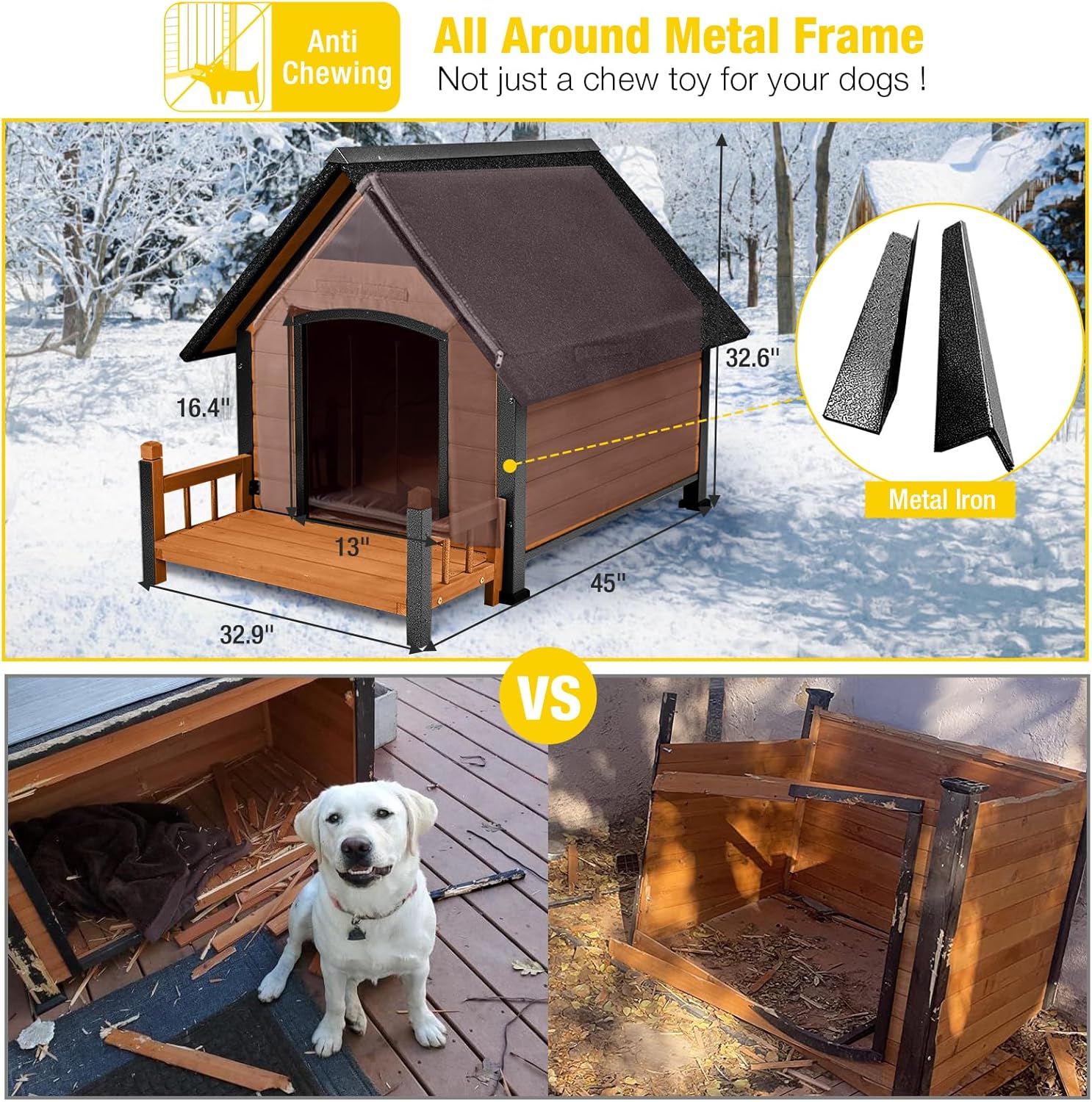 - Perfect Design For Indoor Outdoor: This outdoor dog house is leak-proof and the roof is slanted so rainfall will not sit on top. It will survive in heavy rain/snow to keep your dog warm and dry inside