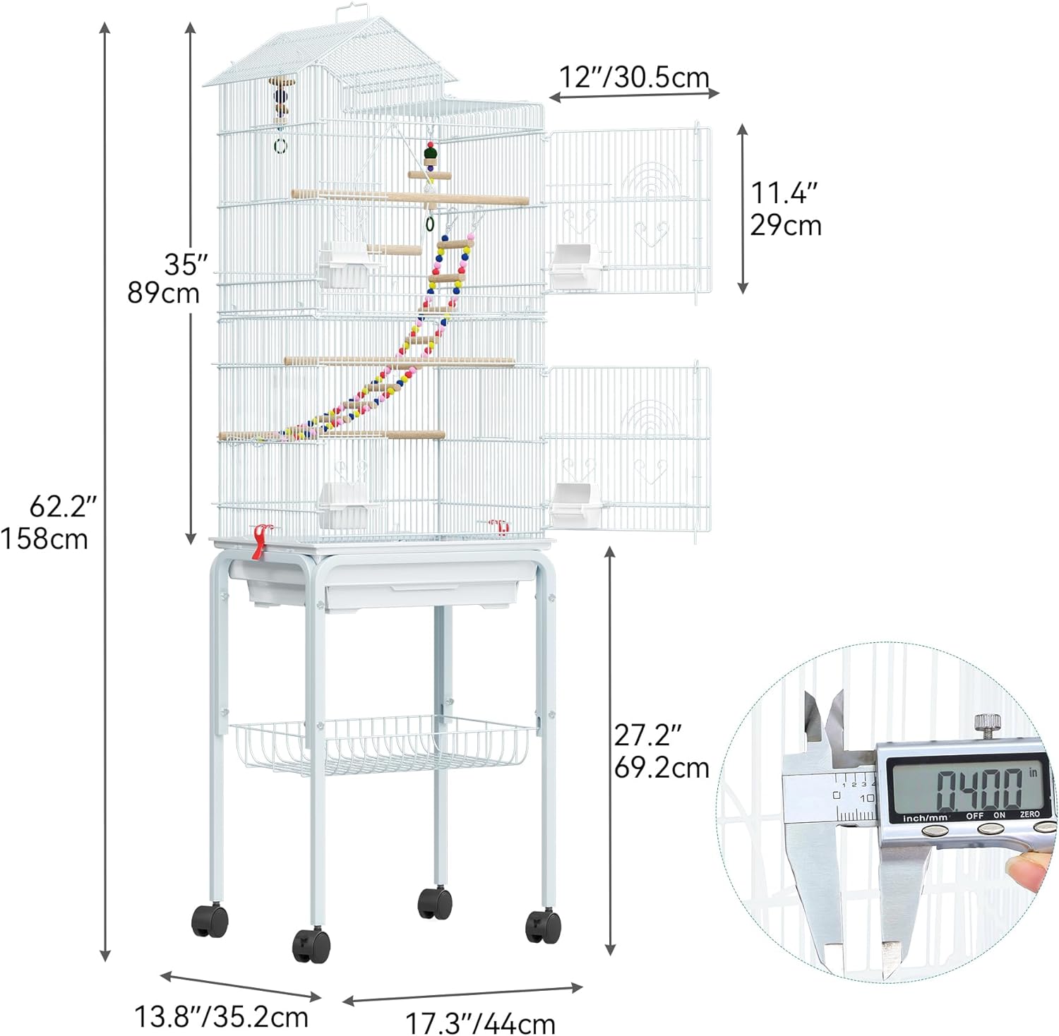 - Easy to move: 4 universal 360-degree swivel wheels are equipped so you can effortlessly relocate the bird cage quickly and safely; Spacious storage rack sits on wheels to grant ample space for pet supplies.
