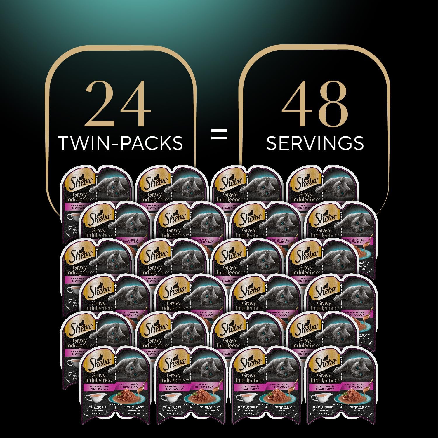 - Extra Gravy, Extra Love: Sheba Gravy Indulgence Wet Cat Food delivers 70% gravy to 30% chunk, serving up extra gravy when compared to Sheba Perfect Portions Cuts in Gravy