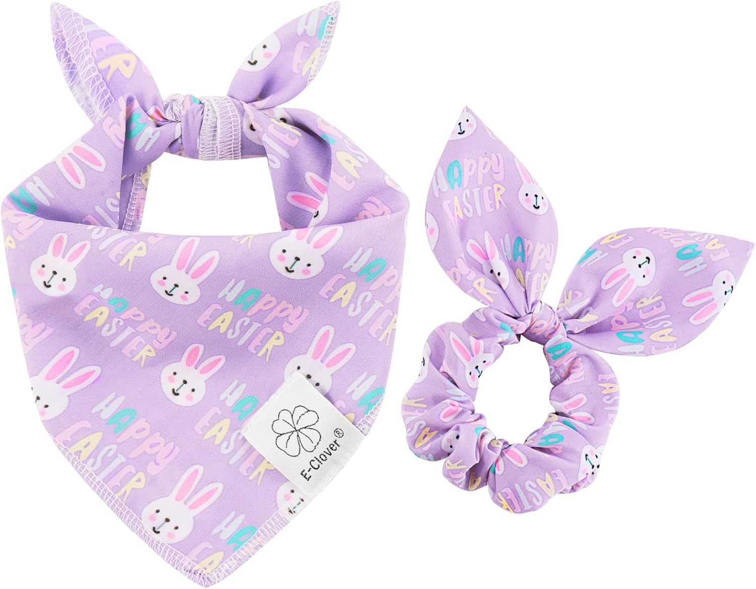 - Matching Dog and Owner Clothes- It’s so cute and unique, dog mom and dogs are wearing the matching costume together. When traveling, daily walking, or taking photos, adorable dog bandana matching scrunchie is both funny and personalized dog accessories. The scrunchie can be worn as a wrist accessory, or as a ponytail holder hair band. Beautiful happy easter dog bandana matching pet set is nice spring themed photo props.