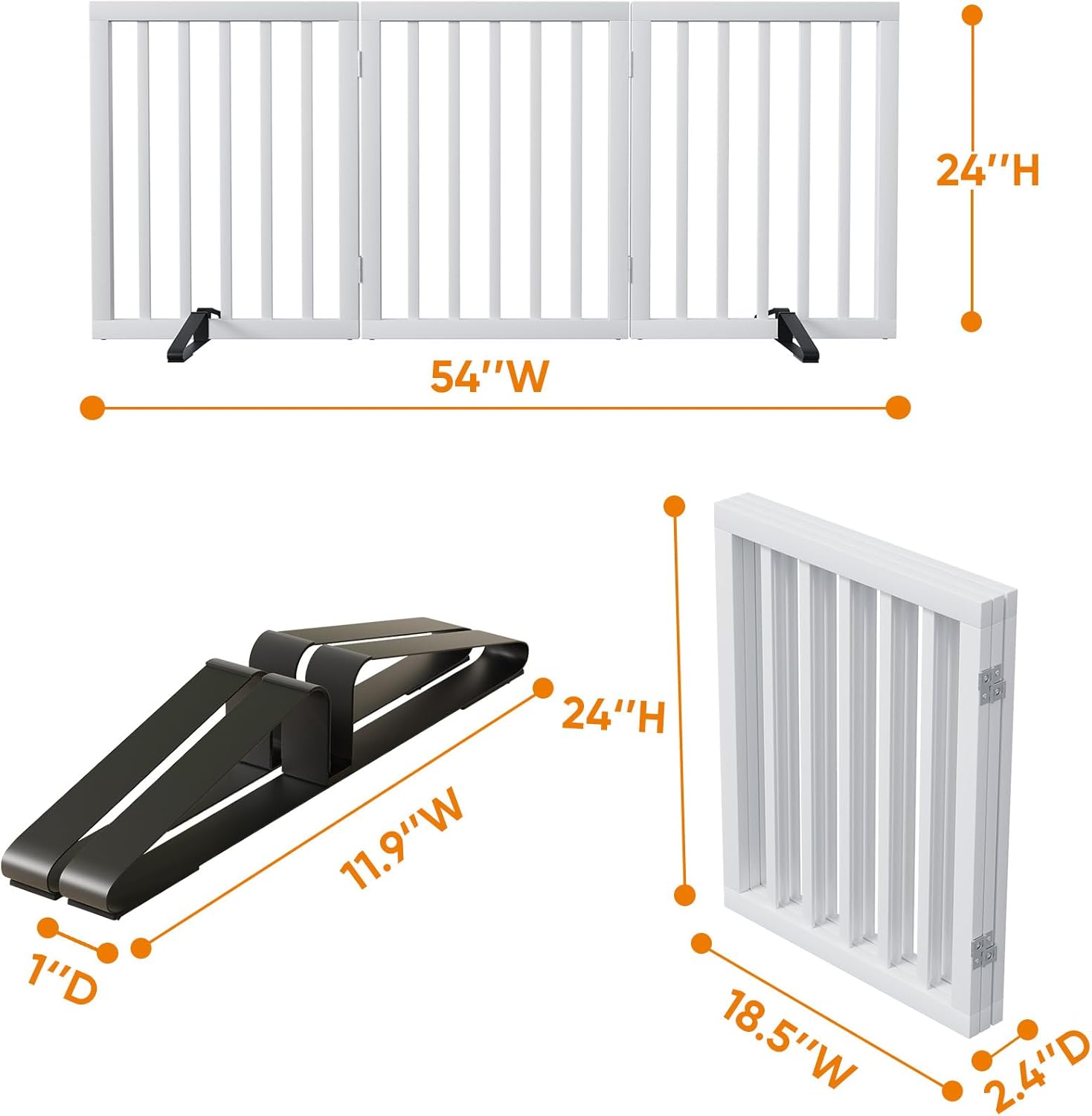 - No Installation and Simple Storage: Unlike wall mounted gate, which need install, this dog gates for stairs does not need installation, open to use. Easily folds together for compact storage, when folded, this dog barriers for home is small enough to fit easily in a closet.