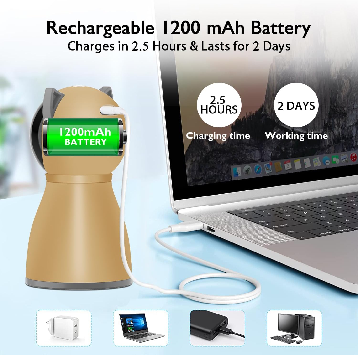 - 【Built-in Rechargeable Battery】Equipped with a rechargeable battery that can be charged via USB cable, fully charged in 2.5 hours, and lasts for approximately 2 days of use