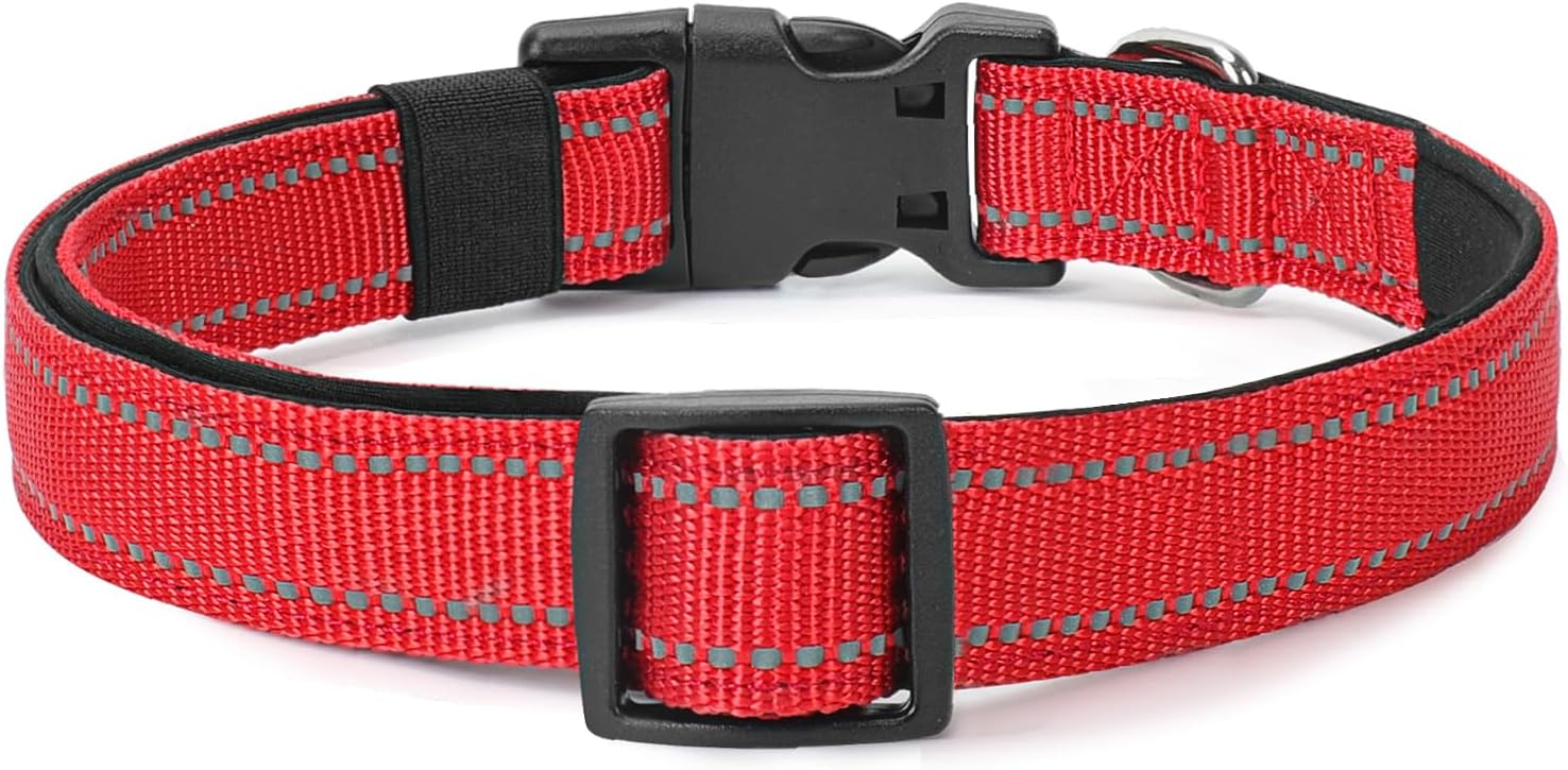 - [ Safe and comfortable ] PenSeepet reflective dog collar for small dogs with Highly reflective at night for safety. And you can easy find your furry pet.Dog collar is made of nylon with thick neoprene padding on the back, making it soft,This prevents any irritation on you pet,Wearing it for a long time is more comfortable. Walking with you is more enjoyable.