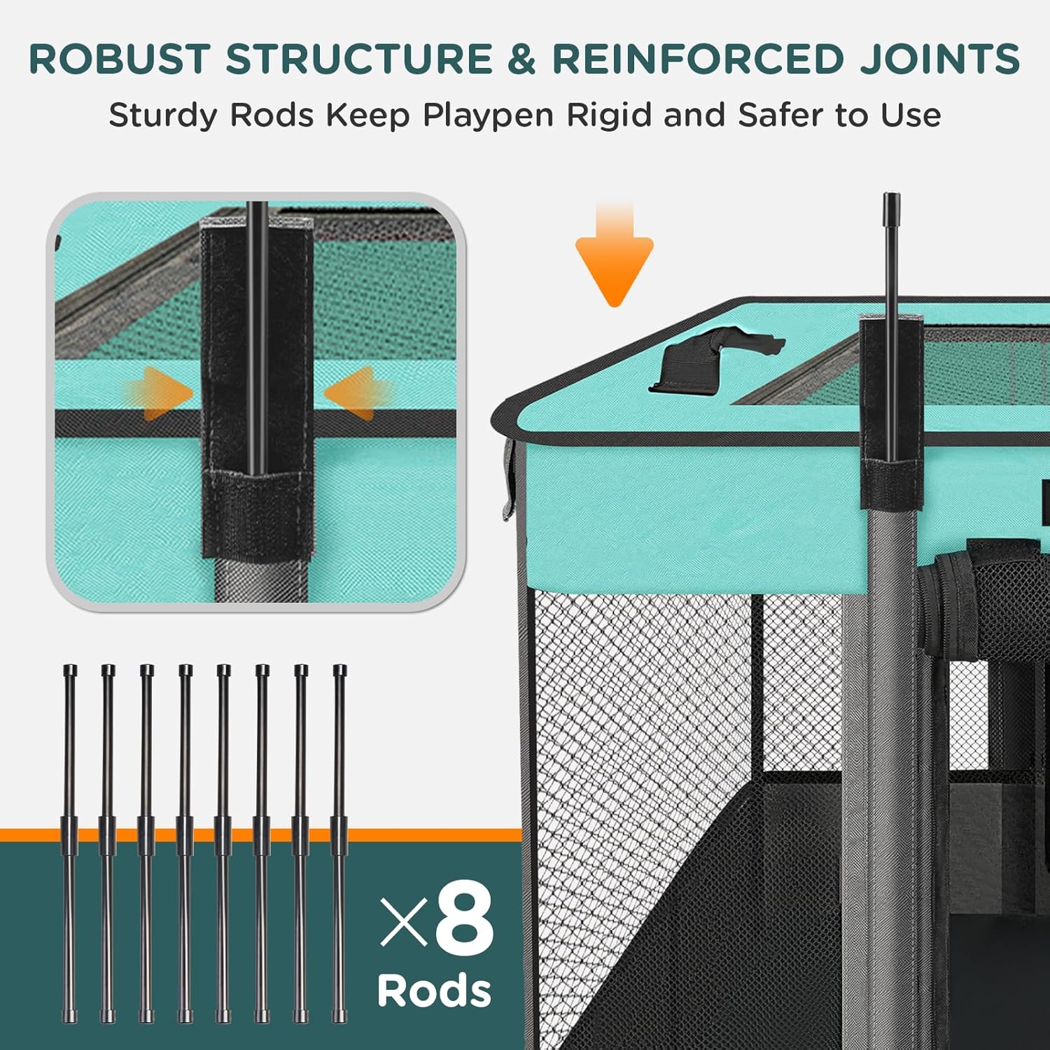- Safety & Durability: Kitten playpen is made of high-quality 600D Oxford cloth, which is wear-resistant, soft to the touch, and odorless. We have reinforced the joints and corners of the dog playpen to ensure the safety of your pet. (The portable pet playpen is lightweight, and you can place heavy objects inside the pet playpen to increase stability, but it is not suitable for use with aggressive pets)