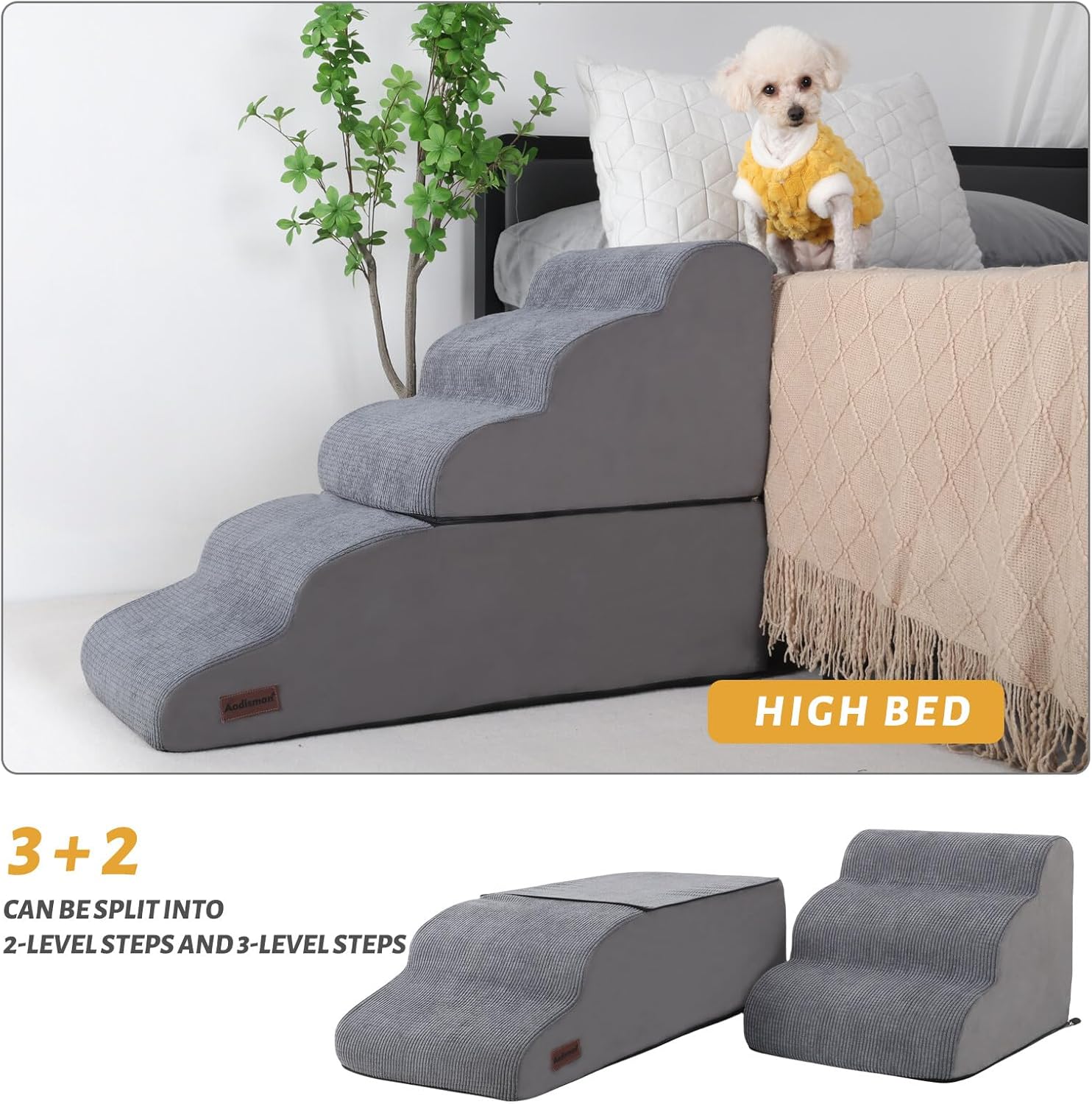 - 5-STEP DOG STAIRS: With a height of 22.8 inches, ,offers your pet an effortless pathway to ascend high beds, eliminating the need for jumping or your assistance. Meeting your pet's practical needs and fostering a closer, safer interactive experience for both you and your furry companion