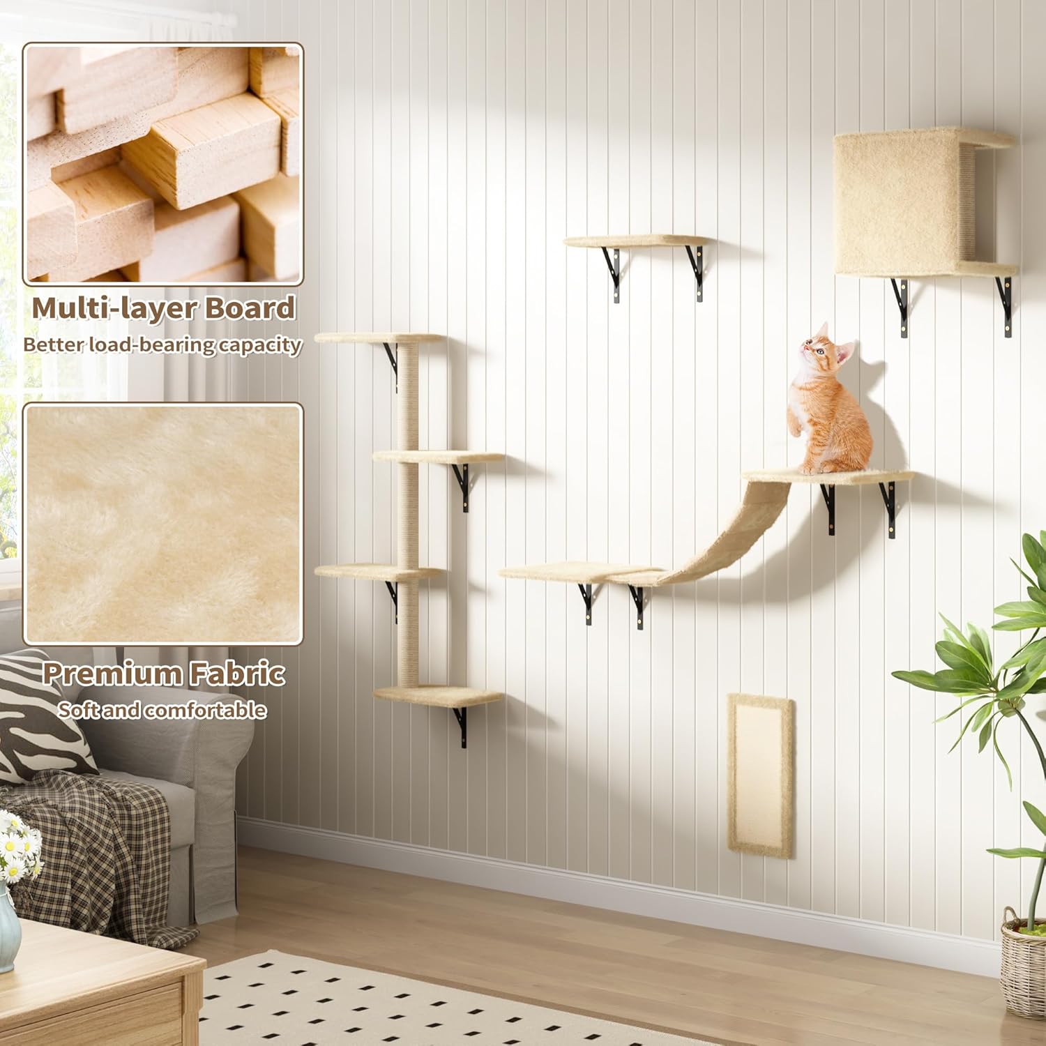 - Built to Last with Comfort: These cat shelves are crafted from durable sisal rope, the scratching board and posts are designed to withstand years of clawing while protecting your furniture