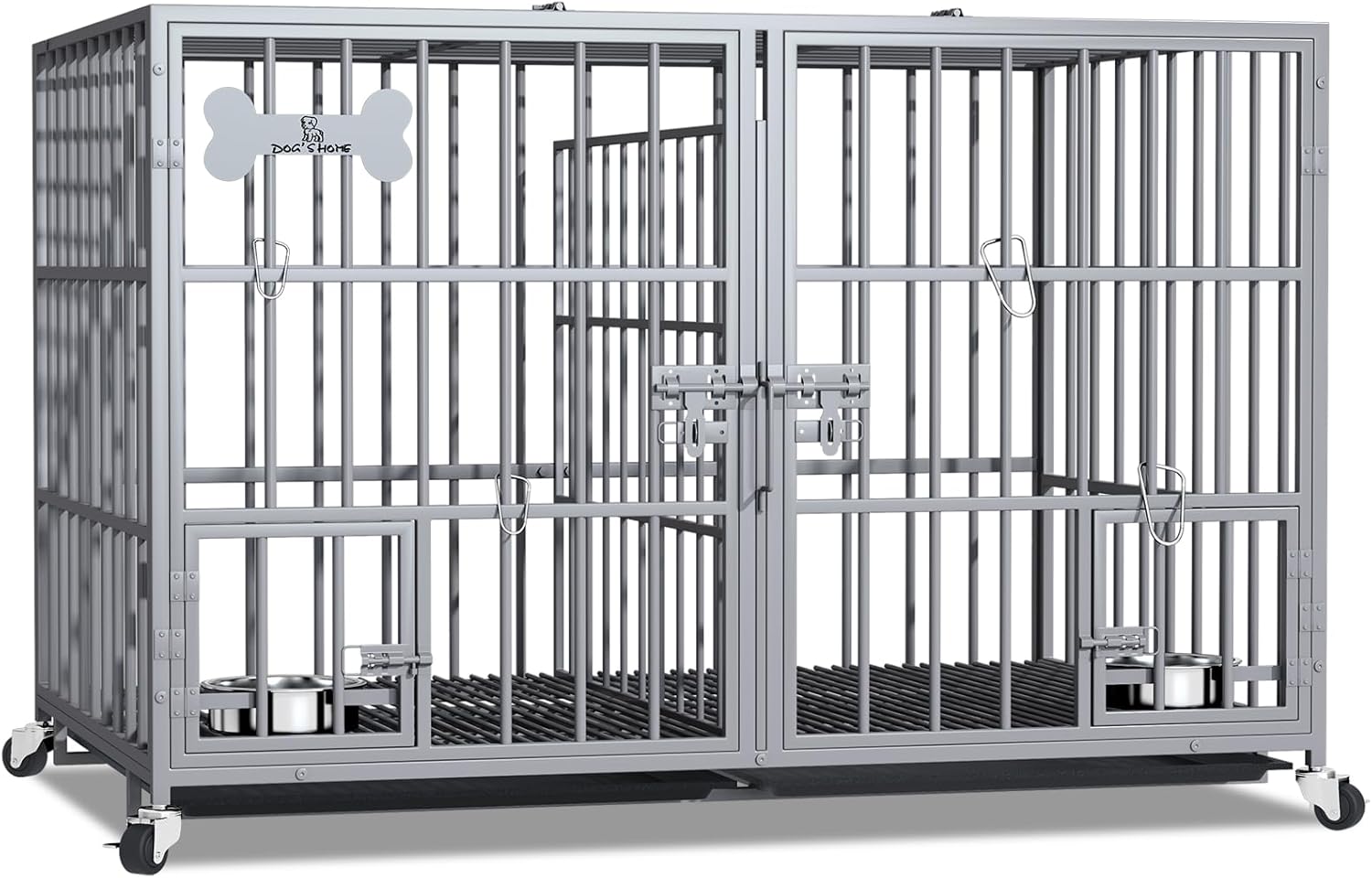 - 【Easy Access & Feeding】The dog crate has double doors and a reversible top for easy access almost anywhere. The top is open for easy access. The kennel is additionally designed with 2 small feeding doors with locks. These doors allow quick and easy access to the stainless steel dog bowl, swing bowl, without having to open the front door for easy feeding. The dog kennel double door design is not only easy to get in and out of the kennel, but also good for you to interact with and feed your dog.