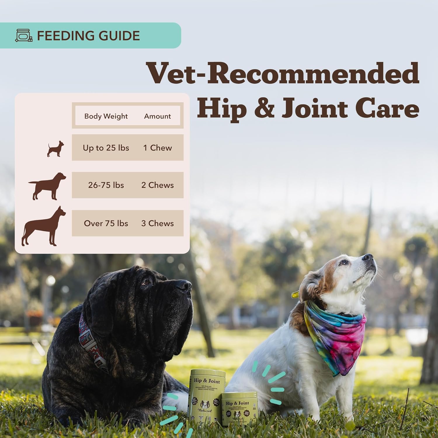 - USAGE MADE SIMPLE: Experience hassle-free administration with our easy-to-follow instructions, ensuring effective use for maximum joint support and overall vitality. For dogs under 25 lbs, give 1 chew per day; for dogs 26-75 lbs, administer 2 chews per day; for dogs over 75 lbs, provide 3 chews per day to support their joint health.