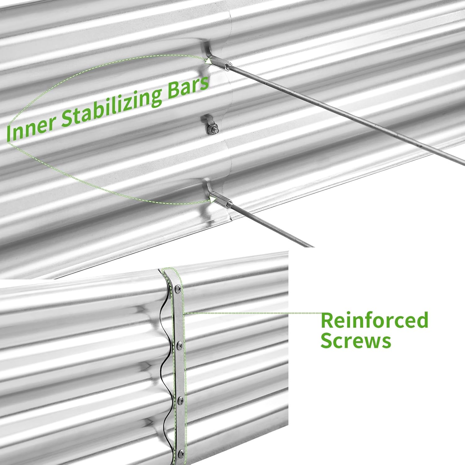 • Stable and Solid Construction: Double card frames on the two sides of the sheet make the raised garden kits more durable and stable, and 4 reinforcing rods make the whole raised garden bed more stable. Never worry about its distortion or collapse and it presents a much more beautiful design.