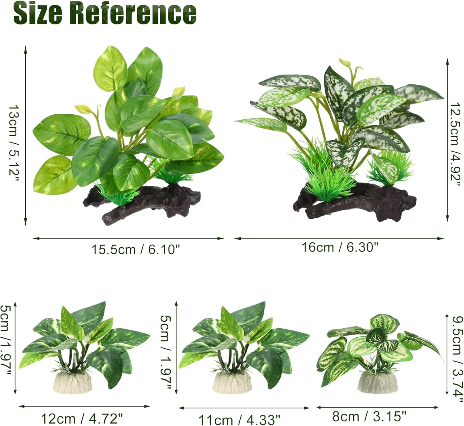 - Dimension - The aquarium betta leaf decor set is about 1.97" to 5.12" high and 2.95" to 5.31" wide. Please remember to confirm the size before buying.