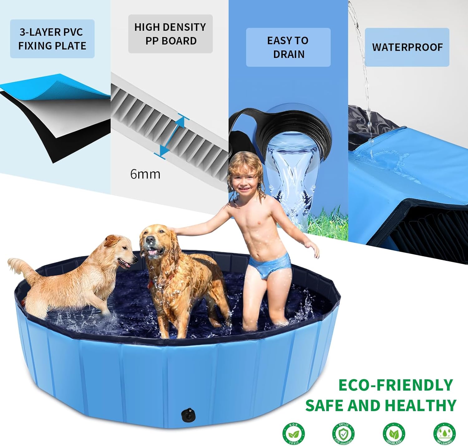 - 🐕【Multi-Purpose】: the dog pools for large dogs is widely suitable for cats, dogs or other pets to enjoy paddling or playing in the water. It can be used as a kiddie pool, pet pool, dog bathtub, whelping box, puppy pool, ball pool, sandbox and so on. It's a great entertainment for your furry friends and kids in the hot summer.