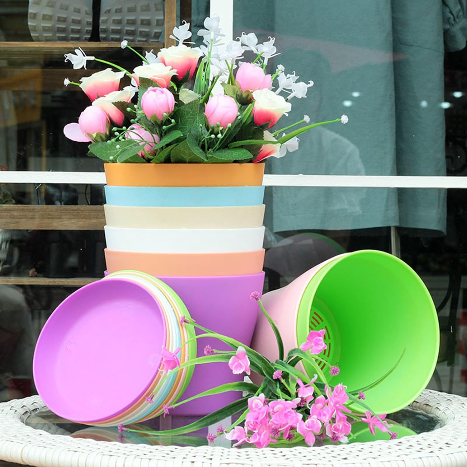 - Material:These plant pots are made of high quality PP plastic, nontoxic, tasteless, lightweight and durable, colorfast