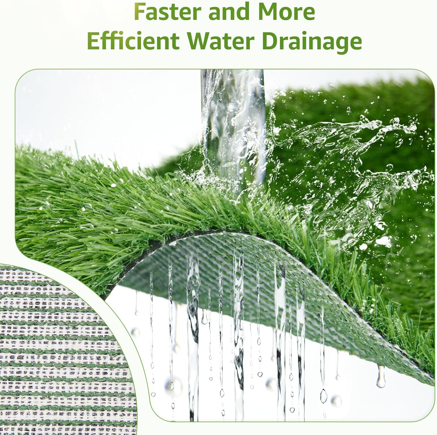 - RAPID FLOW DRAINAGE: Constructed with a highly-drainable backing material to maximize draining capacity, to help urine and clear water wee away quickly, and the porous grass avoids wet paws after dog use- Avoid any mess for potty time.
