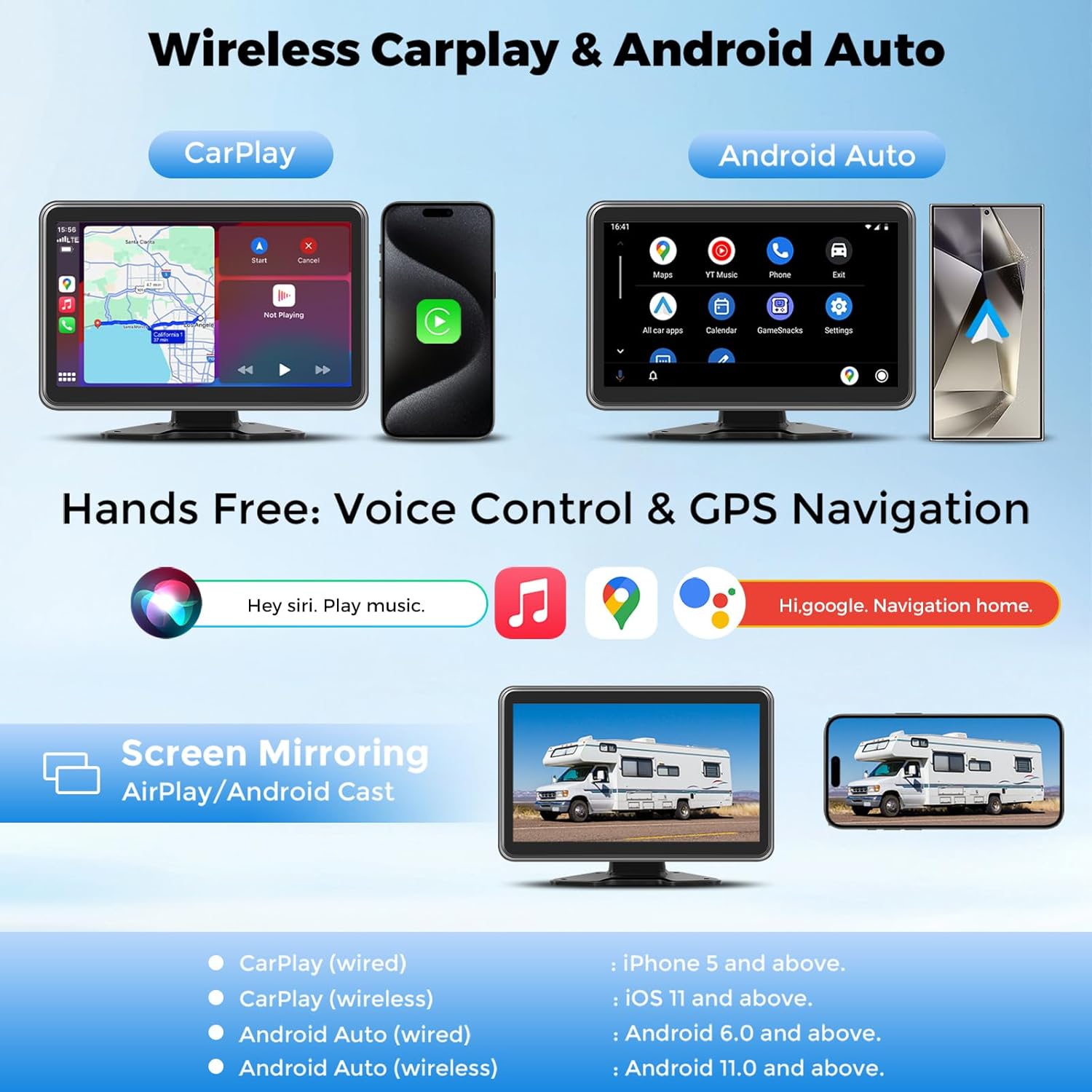 - 【Voice Control & Real-Time Navigation】This amazing HD 10-inch wireless CarPlay backup camera with screen is your gateway to real-time GPS navigation! Connect it to your phone's CarPlay or Android Auto and it'll keep you up to date with the latest road conditions from Google Maps and Waze. It'll even suggest the best route for you! And with Siri or Google Voice Assistant, you can answer calls, play music, and navigate home hands-free, making your drive safer and more enjoyable.