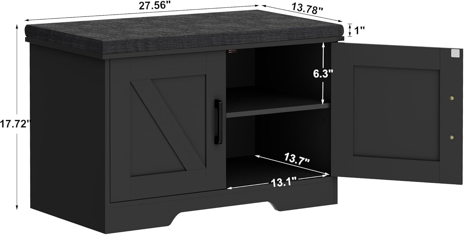 - Keep Your Shoes Organized: The depth of bench is 13.8 inches, which makes it easily to put in your shoes, meanwhile shoes of various heights can be placed by adjusting middle movable boards. The bench doors design ensures not only your privacy, but also a tidy space