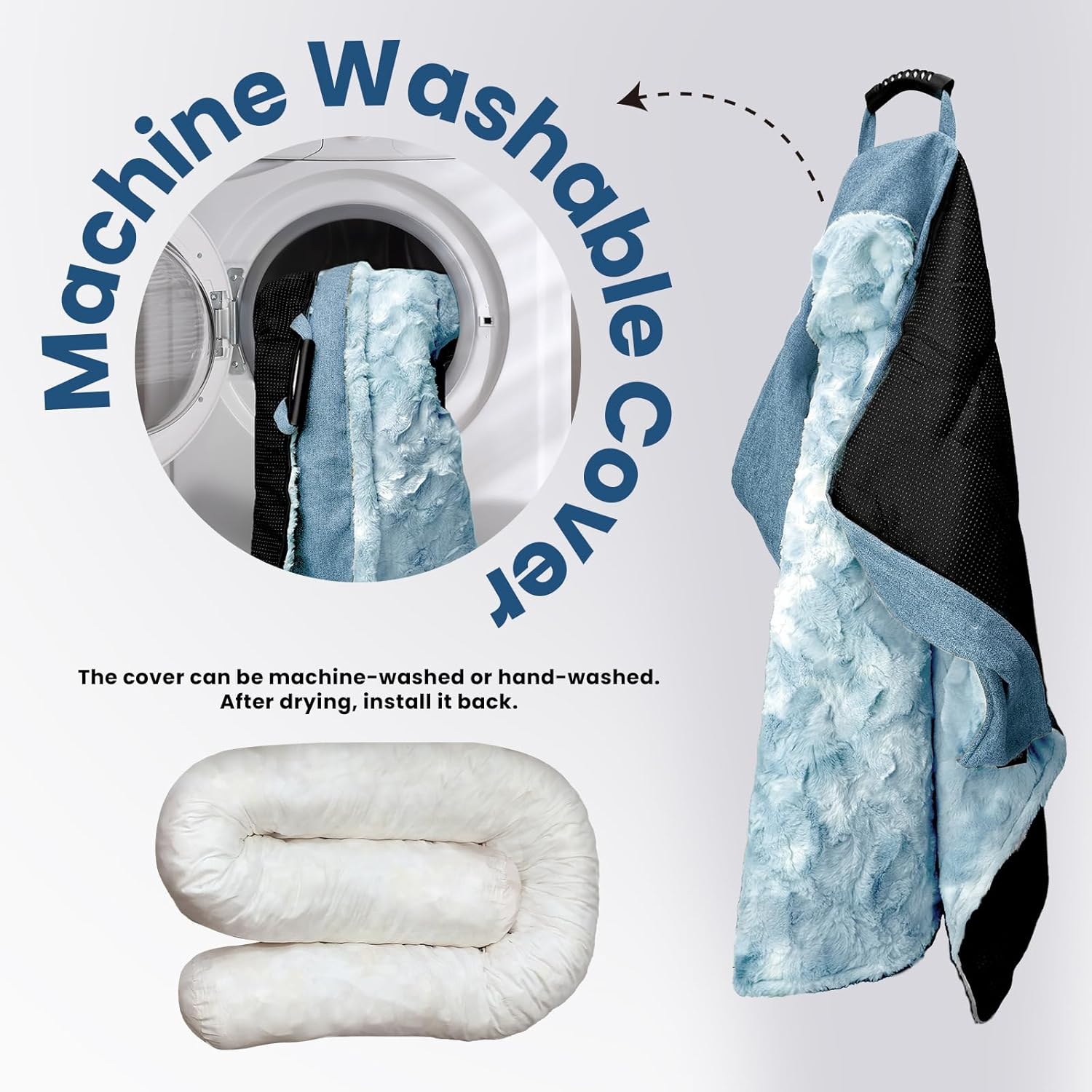 - 𝑷𝒐𝒓𝒕𝒂𝒃𝒍𝒆 𝒂𝒏𝒅 𝑴𝒂𝒄𝒉𝒊𝒏𝒆 𝑾𝒂𝒔𝒉𝒂𝒃𝒍𝒆: Designed for both comfort and convenience, the dog mat is perfect for pets on the go. With a built-in handle, it’s easy to carry. whether camping, traveling, or protecting car seats. When it’s time to clean, simply remove the cover and toss it in the wash. Keeping your pet’s bed fresh and ready for the next adventure has never been easier.