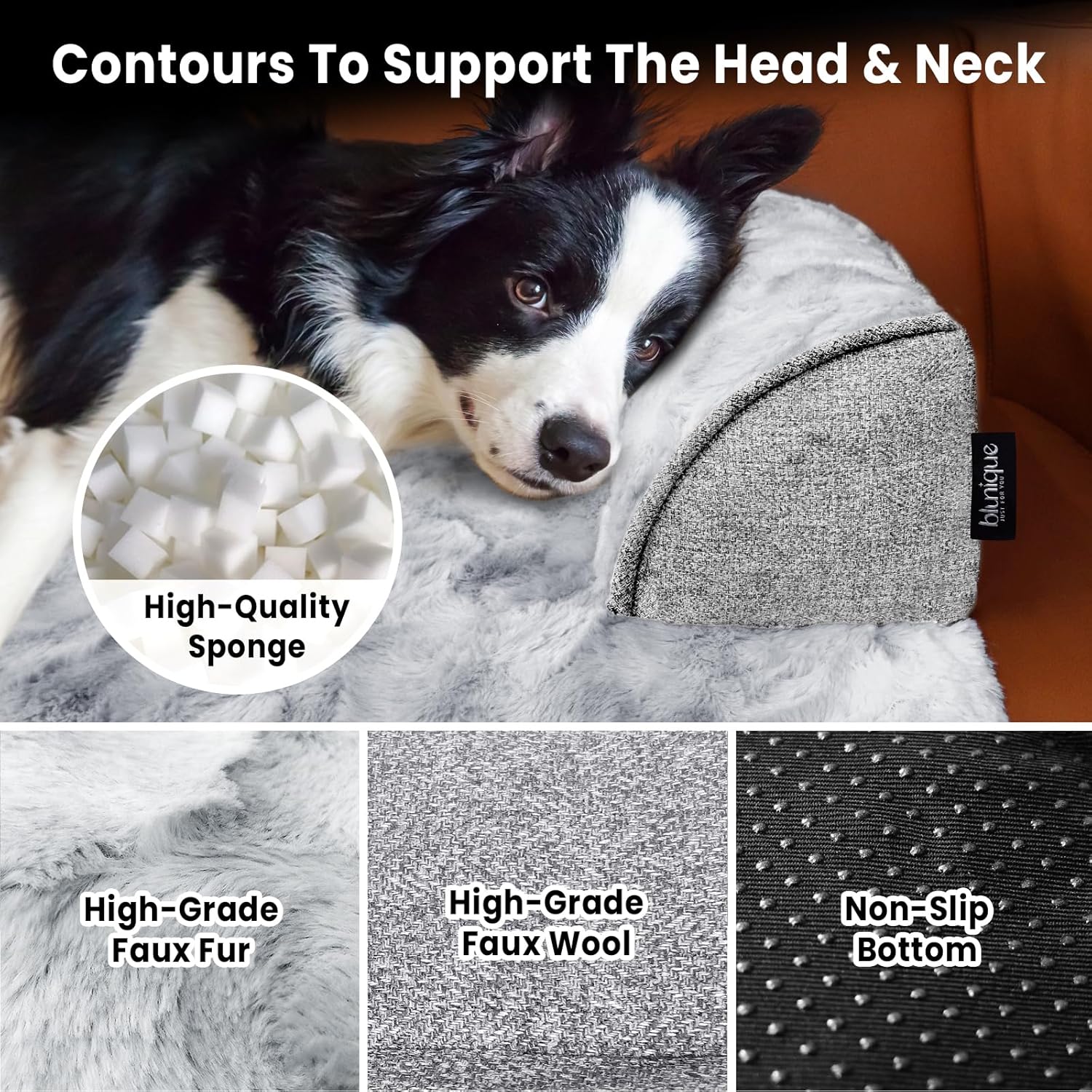 • 𝑪𝒐𝒛𝒚 𝒂𝒏𝒅 𝑹𝒆𝒂𝒍𝒊𝒔𝒕𝒊𝒄 𝑭𝒂𝒖𝒙 𝑭𝒖𝒓: Snuggle in style with blunique faux fur memory foam dog bed for couch, made with high-quality faux fur that mimics the soft, natural feel of real fur. Designed for pure relaxation, your pet can sink into the soft, plush embrace of the bed and experience true bliss, every time they lie down.