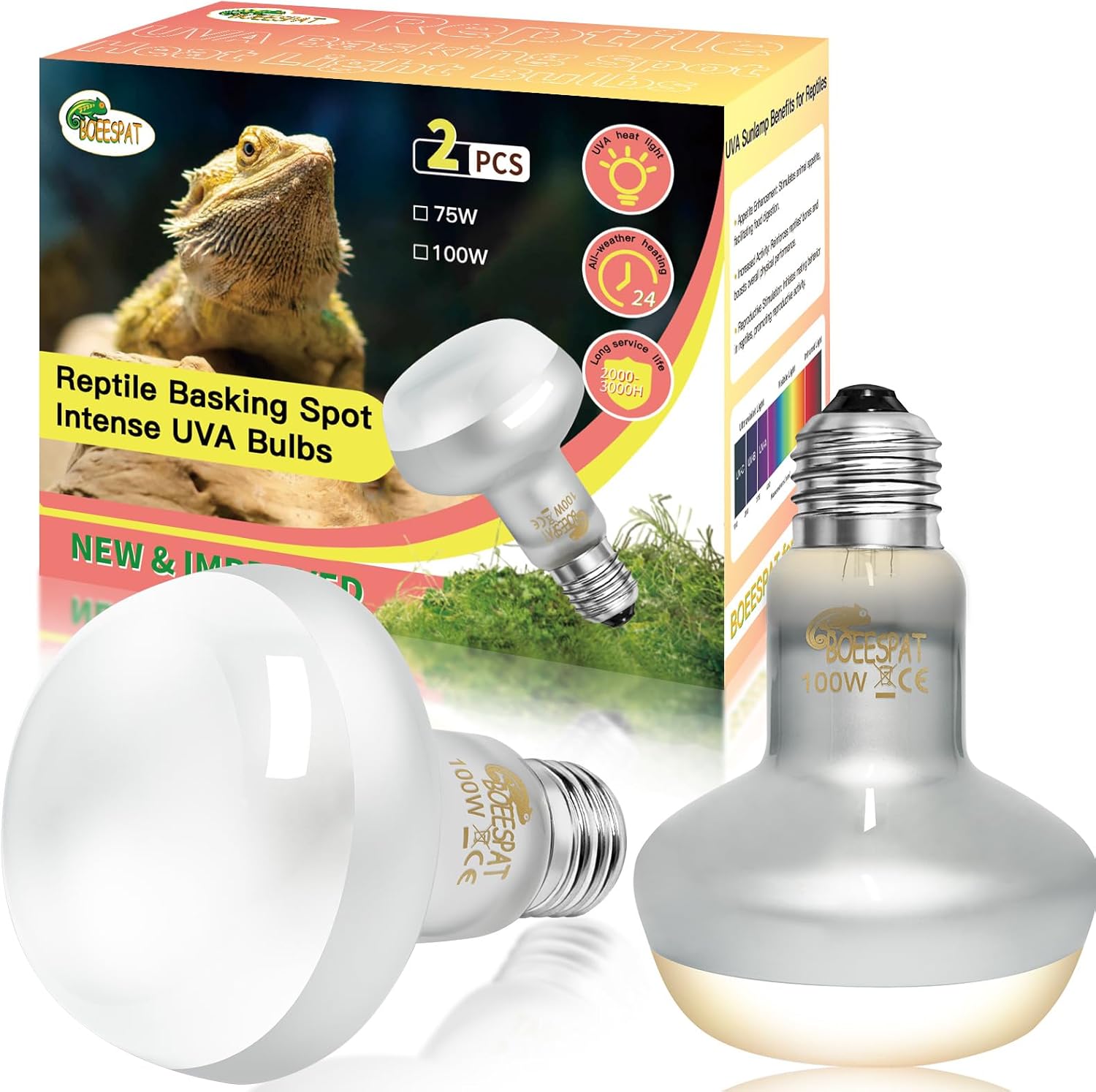 - 【Enhanced UVA Emission and Focused Heat for Superior Wellness】: The Intense UVA Basking Light Bulb emits higher levels of UVA rays compared to standard basking lights. This increased UVA output, combined with a concentrated heat area, provides an ideal basking spot that helps your pet regulate its body temperature efficiently. This dual benefit supports your reptile's physical and mental health, promoting essential natural behaviors like increased appetite, mating, and activity levels.