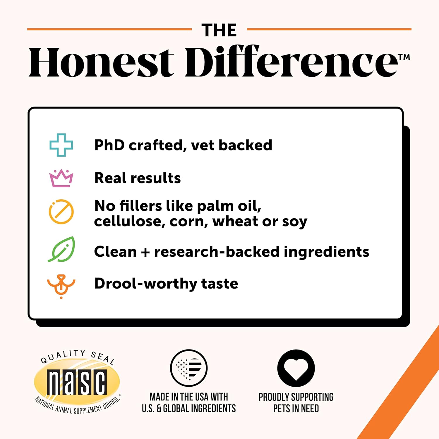 - Made in the U.S.A. | NASC Member Company: All Pet Honesty products are made in the US with US and globally-sourced ingredients, meeting the highest safety standards. As a NASC member company, we adhere to strict quality and compliance standards for pet supplements. We also support pets in need nationwide through our Social Impact Committee, helping all pets live healthier, happier lives.