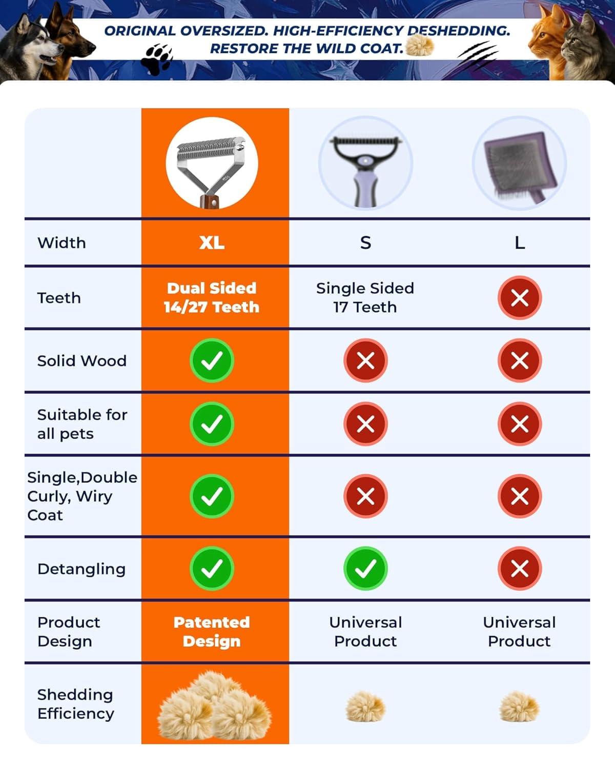 - ☀️【Reduce Shedding Significantly】KIZO ESLO️ double-sided shedding tool quickly demat and detangle pet undercoat rake and effectively reduces shedding by up to 97.9%, keeping your home cleaner and your pet's coat in excellent condition. Perfect for use during shedding season.