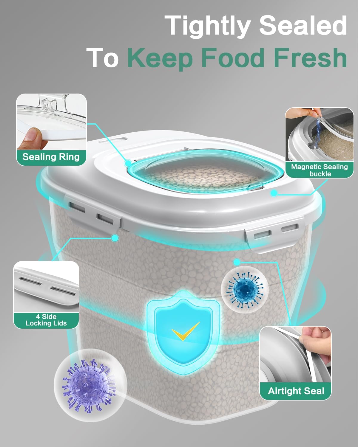 - 【Capacity】 The airtight container's largest capacity can accommodate up to 30 lbs of pet food.