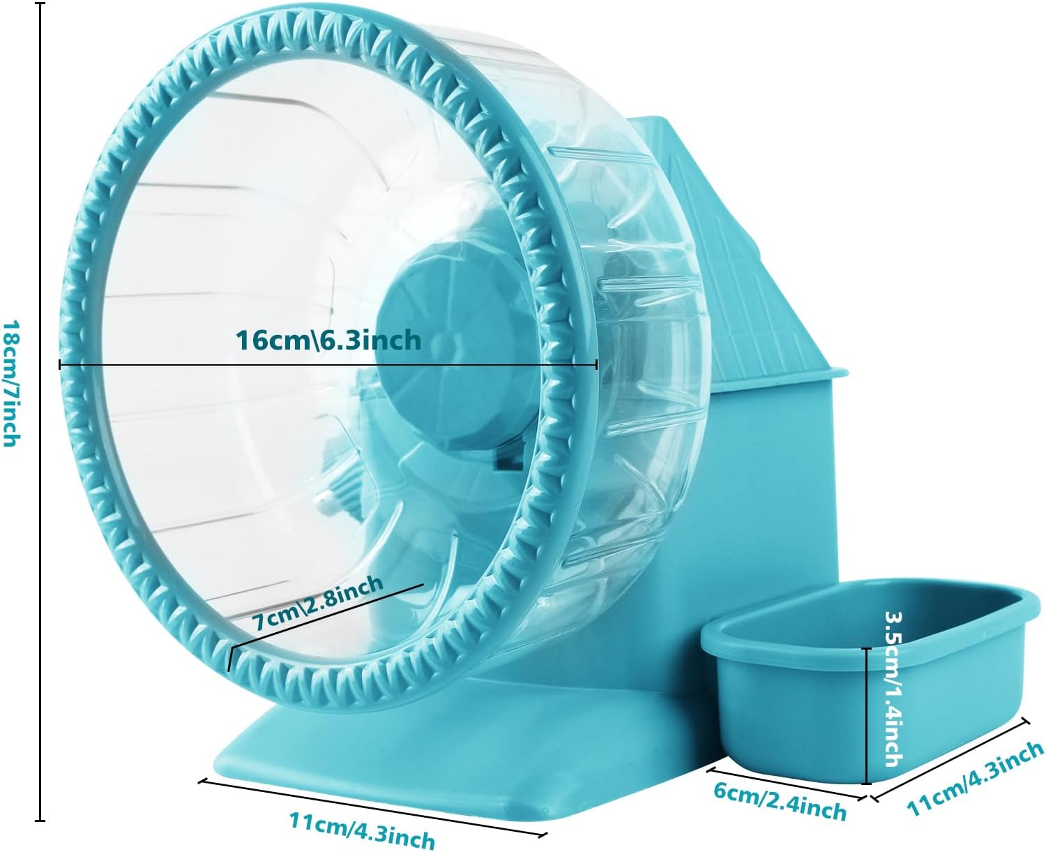 4 in 1 Silent Large Hamster Wheel Multifunctional Hamster Running Wheel Quite Running Spinner Wheel Accessories with Food Bowl Water Bottle for Hamsters Dwarf Gerbil (Blue)