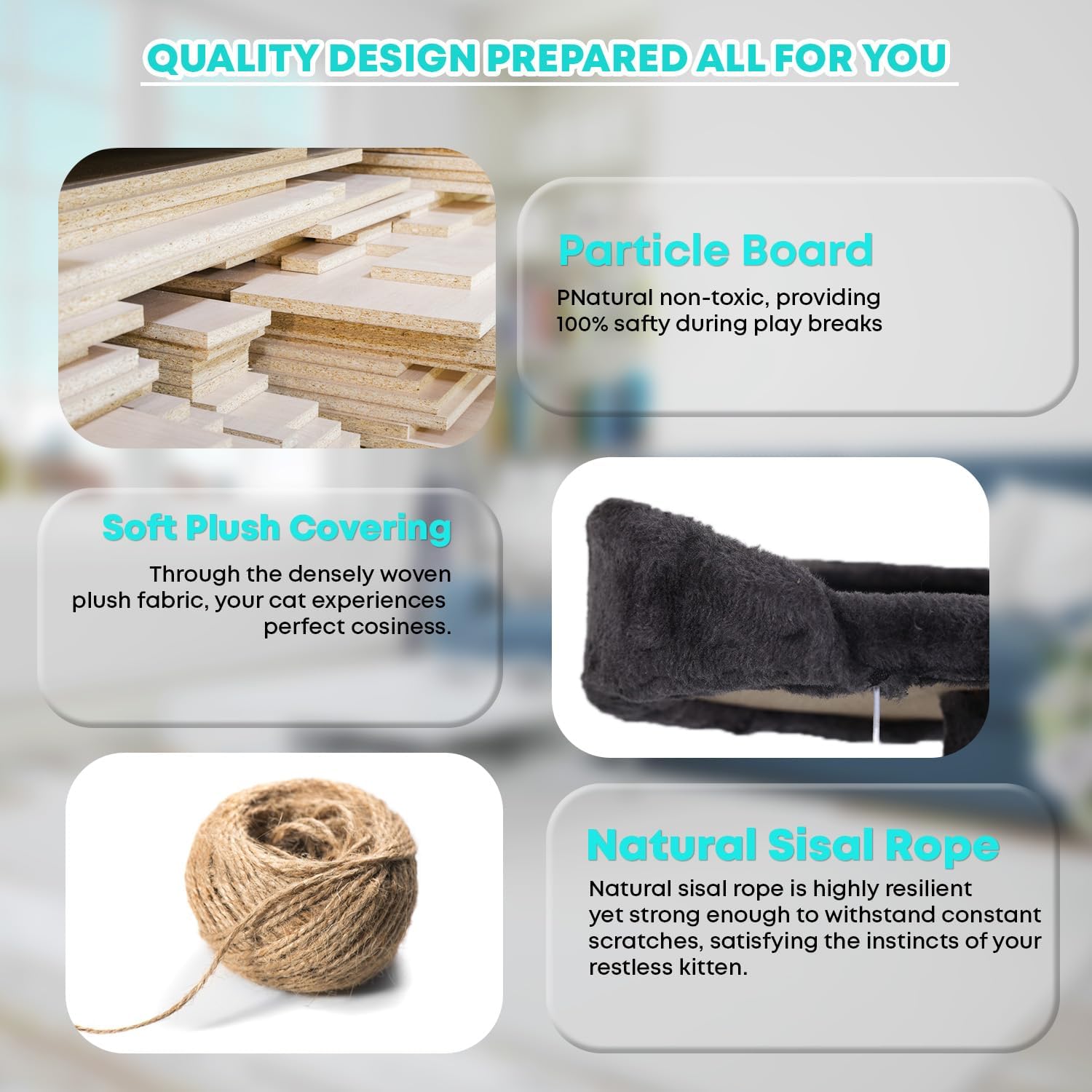 • 🐱 【Posts for Scratching Covered in Sisal 】These are scratching surfaces that are integrated into the framework. Cats love to bury their claws in sisal because it's a sturdy substance with a coarse texture. Our cat tree promotes healthy scratching habits and helps discourage cats from damaging furniture by offering dedicated spaces for them to scratch.