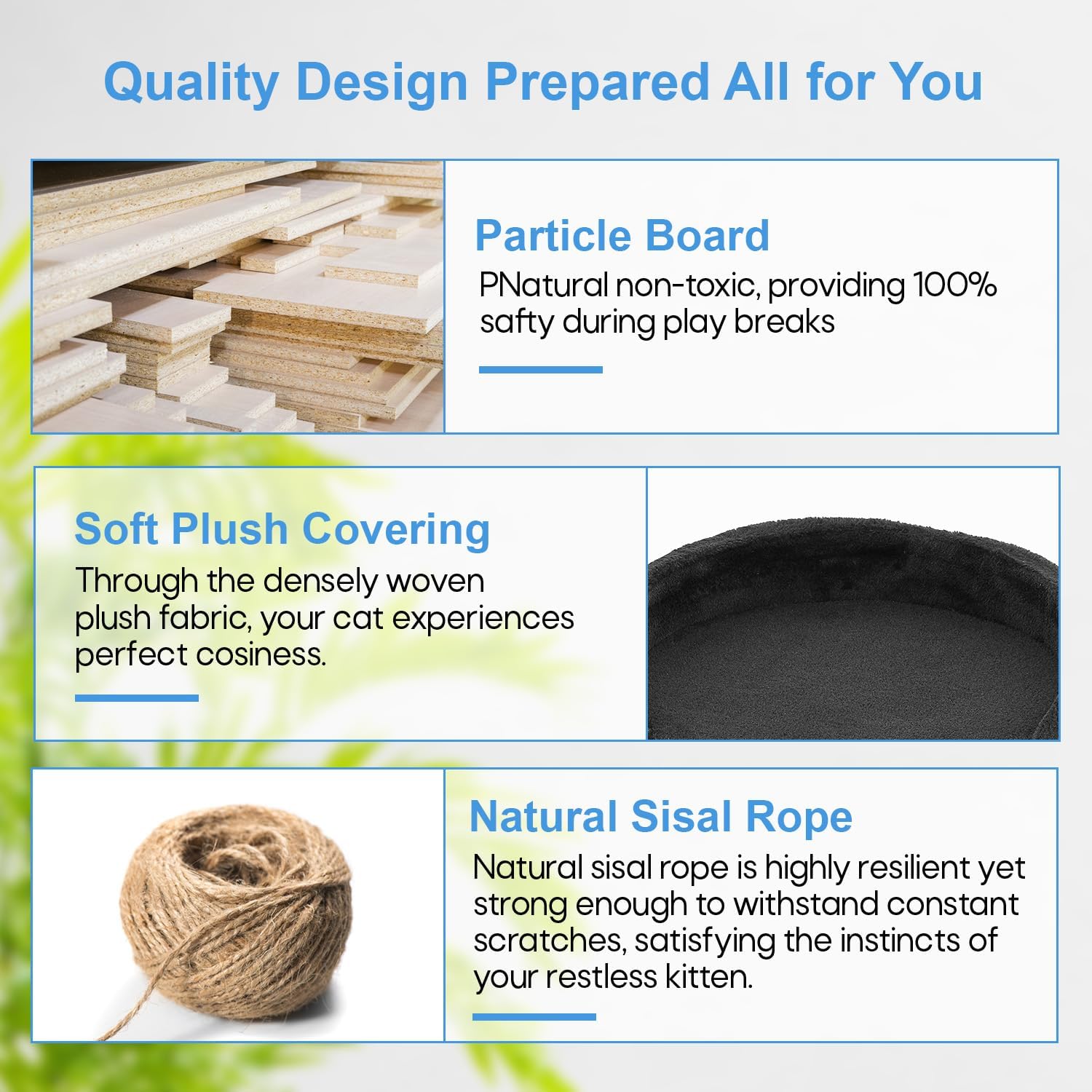 • 🐱 【Posts for Scratching Covered in Sisal 】These are scratching surfaces that are integrated into the framework. Cats love to bury their claws in sisal because it's a sturdy substance with a coarse texture. Our cat tree promotes healthy scratching habits and helps discourage cats from damaging furniture by offering dedicated spaces for them to scratch.