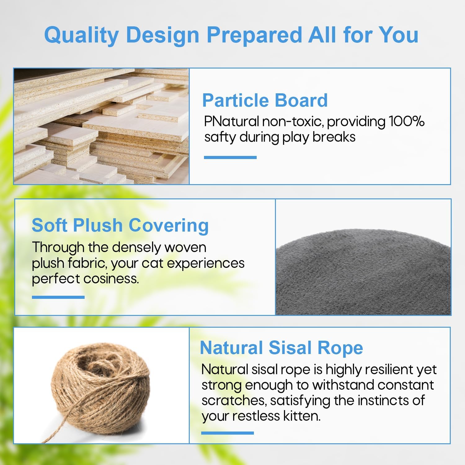 • 🐱 【Posts for Scratching Covered in Sisal 】These are scratching surfaces that are integrated into the framework. Cats love to bury their claws in sisal because it's a sturdy substance with a coarse texture. Our cat tree promotes healthy scratching habits and helps discourage cats from damaging furniture by offering dedicated spaces for them to scratch.