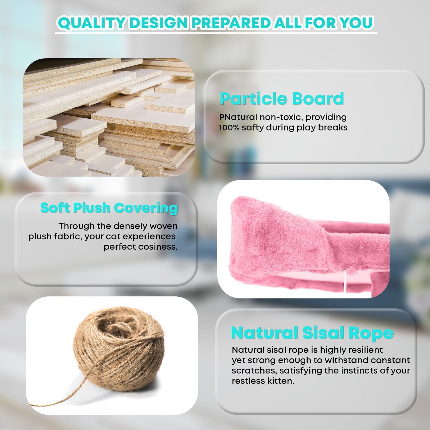 • 🐱 【Posts for Scratching Covered in Sisal 】These are scratching surfaces that are integrated into the framework. Cats love to bury their claws in sisal because it's a sturdy substance with a coarse texture. Our cat tree promotes healthy scratching habits and helps discourage cats from damaging furniture by offering dedicated spaces for them to scratch.