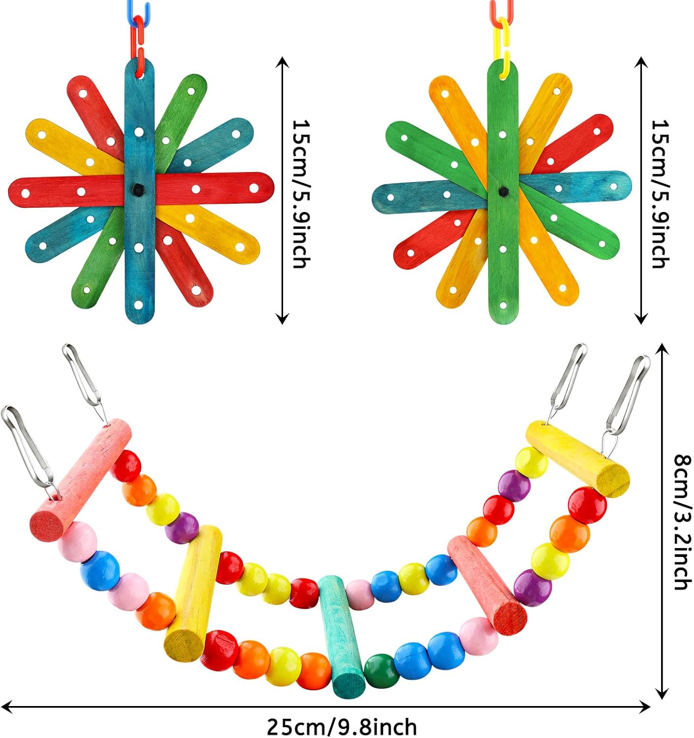 - Bird Cage Accessories includes 8 packs Bird Toys for Parakeets with Colorful Ladder Hammock to meet your various needs for birds parrot having fun. Suitable for small and medium birds.