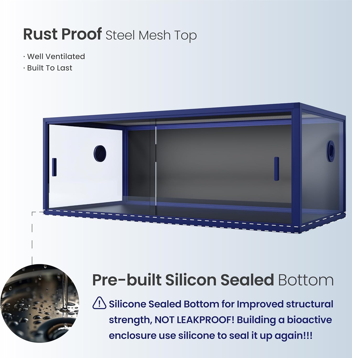 - 【Caution!!!】NOT LEAKPROOF! Silicone-sealed bottom only for improved structural strength. If you’re building a bioactive enclosure, don’t forget to double seal with silicone for a secure and reliable seal!