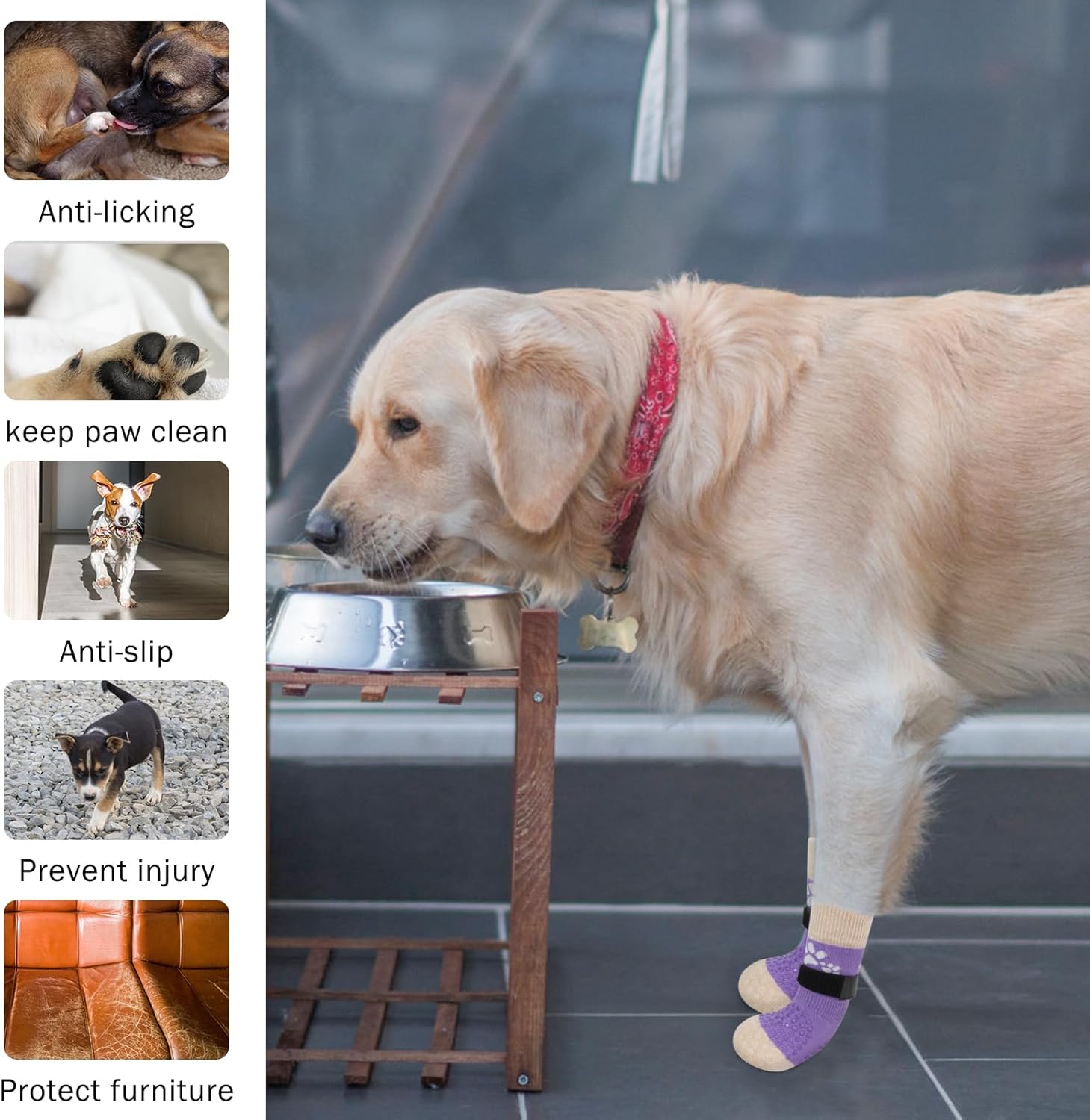 • MULTIFUNCTIONAL MULTI-SITUATION APPLICATION: This dog socks for hardwood floors can provide protection for your dog's paws from hot pavement, heat and other potential hazards in the summer. Wearing our socks also prevents dogs from licking and irritating wounds, further aiding in the healing of foot wounds.