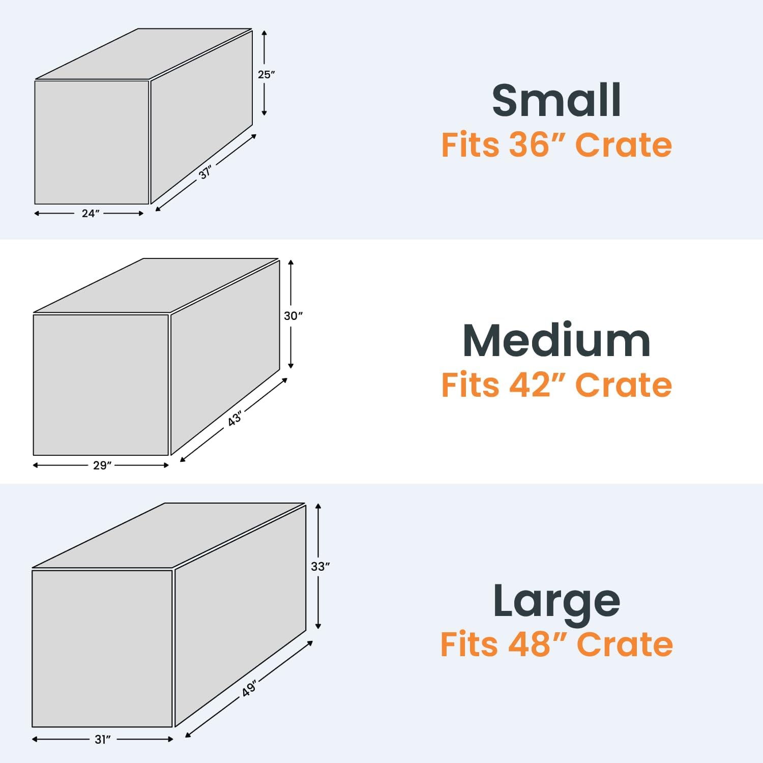 • MULTIPLE SIZES FOR A CUSTOMIZED FIT: Available in 36", 42", and 48" sizes, this crate cover is designed to fit most standard wire crates with a snug, secure fit. Perfect for home or travel, it creates a cozy, private space that helps your dog feel safe, comfortable, and undisturbed.