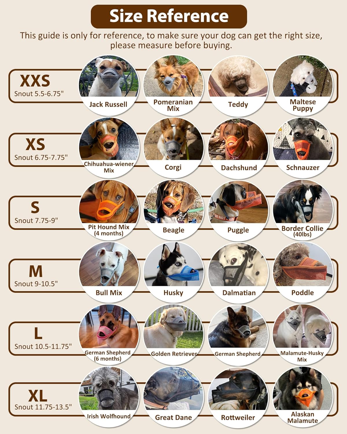 - Muzzle for Large Sized Dog: The selected size is XL, with snout circumference of 11.75'' to 13.5''. Suitable for Golden Retriever, Labrador, German Shepherd, Doberman, etc. Every dog’s snout is unique, please Measure Before Purchasing. Don't select a size based on breed or previous orders. If your dog's measurements are between two sizes, please choose the smaller size. (Note: Not for fierce dogs, overactive dogs, or short-snout dogs.)