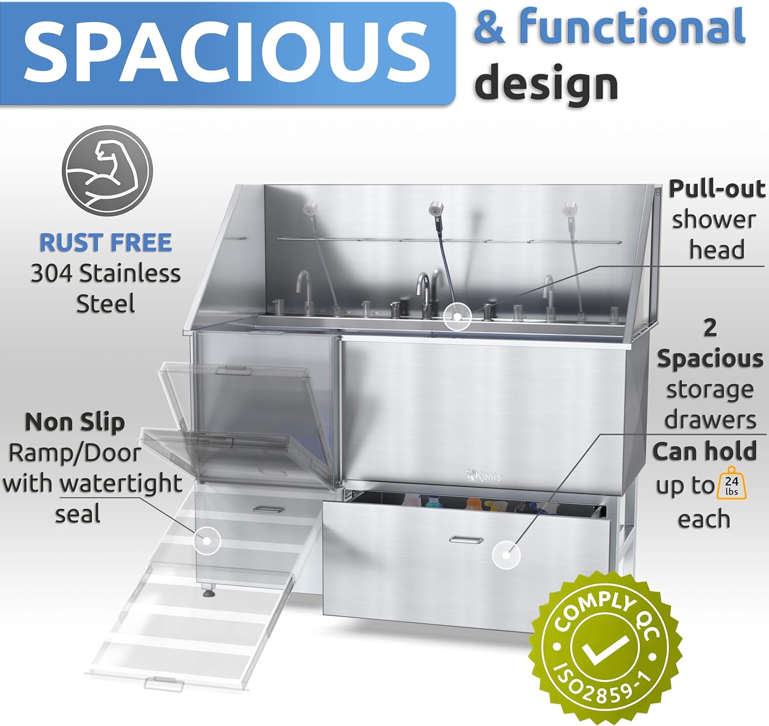 - 61" UTILITY & GROOMING STATION: KANIS presents a versatile dog bathtub designed for both pet washing and household cleaning tasks. Perfect addition and easy to install in any grooming salon, utility room, laundry, garage, or mudroom