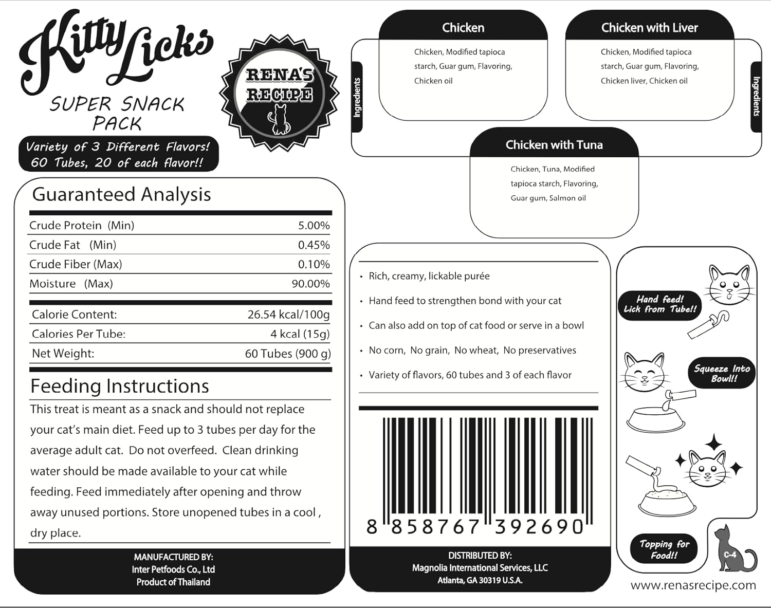 - Chicken variety of 3 flavors, 60 tubes and 20 of each flavor