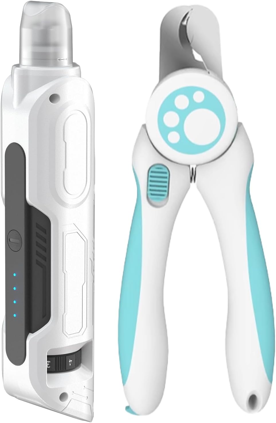 • 【Dual LED & Powerful Motor】The dog nail trimmers has two built-in high-brightness LED lights to clearly illuminate every detail of the nails to avoid accidentally grinding the blood line; combined with a high-torque motor, it can easily cope with nails of various thicknesses (including the hard nails of large dogs). Even thick nails can be easily and quickly polished without jamming or heat, making pets more comfortable.
