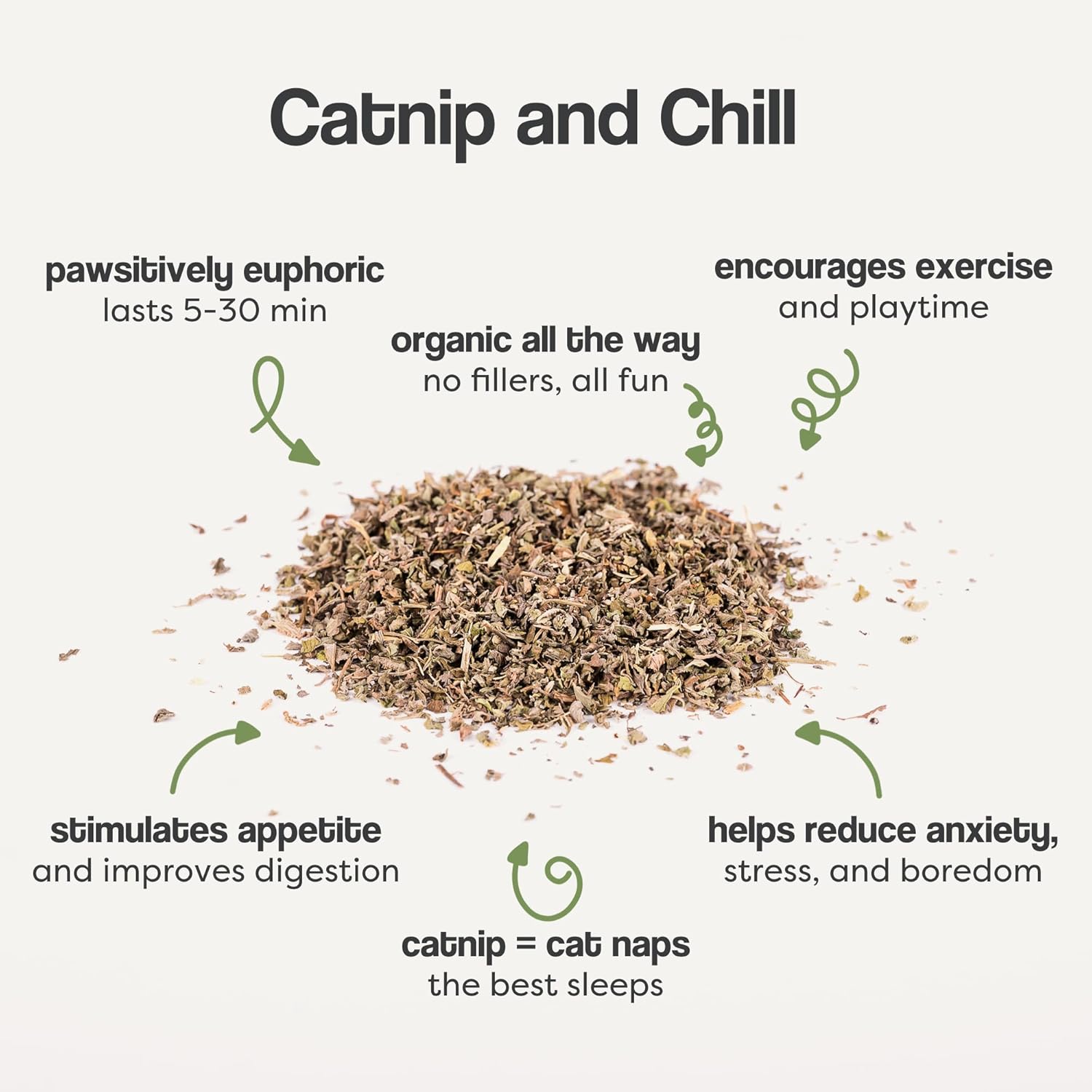 - High Potency Organic Catnip. Grown and harvested at peak freshness, this 100% natural catnip delivers powerful effects that stimulate play and excitement in both cats and kittens