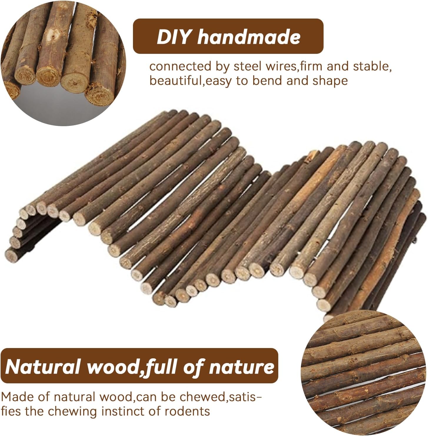 - 【Product Features】Large guinea pig wooden bridge internal metal wire can be freely bent,pliable and flexible,bunny wooden tunnels can be designed into tunnels,bridges,rabbit ladder or slopes and other shapes,wooden guinea pig tunnel can add more fun for pets.And guinea pig wooden tunnel is made of solid wood,very sturdy,durable and practical.