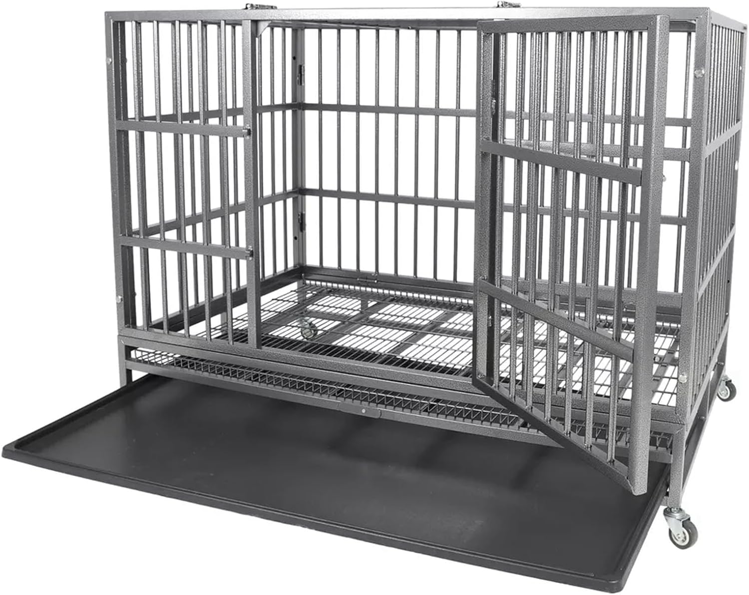 - Double Door Access: The dog cage has a two-door design that allows your furry friends to get in and out easily from the front and top.