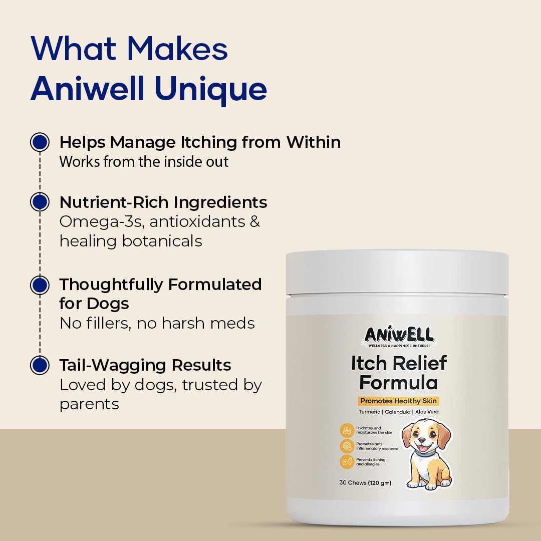 - Anchovy Oil: Contains omega-3 fatty acids, which help reduce inflammation and itching in dogs, promoting healthier skin and coat. Additionally, it supports overall skin health by nourishing and moisturizing the skin, providing relief from itching.