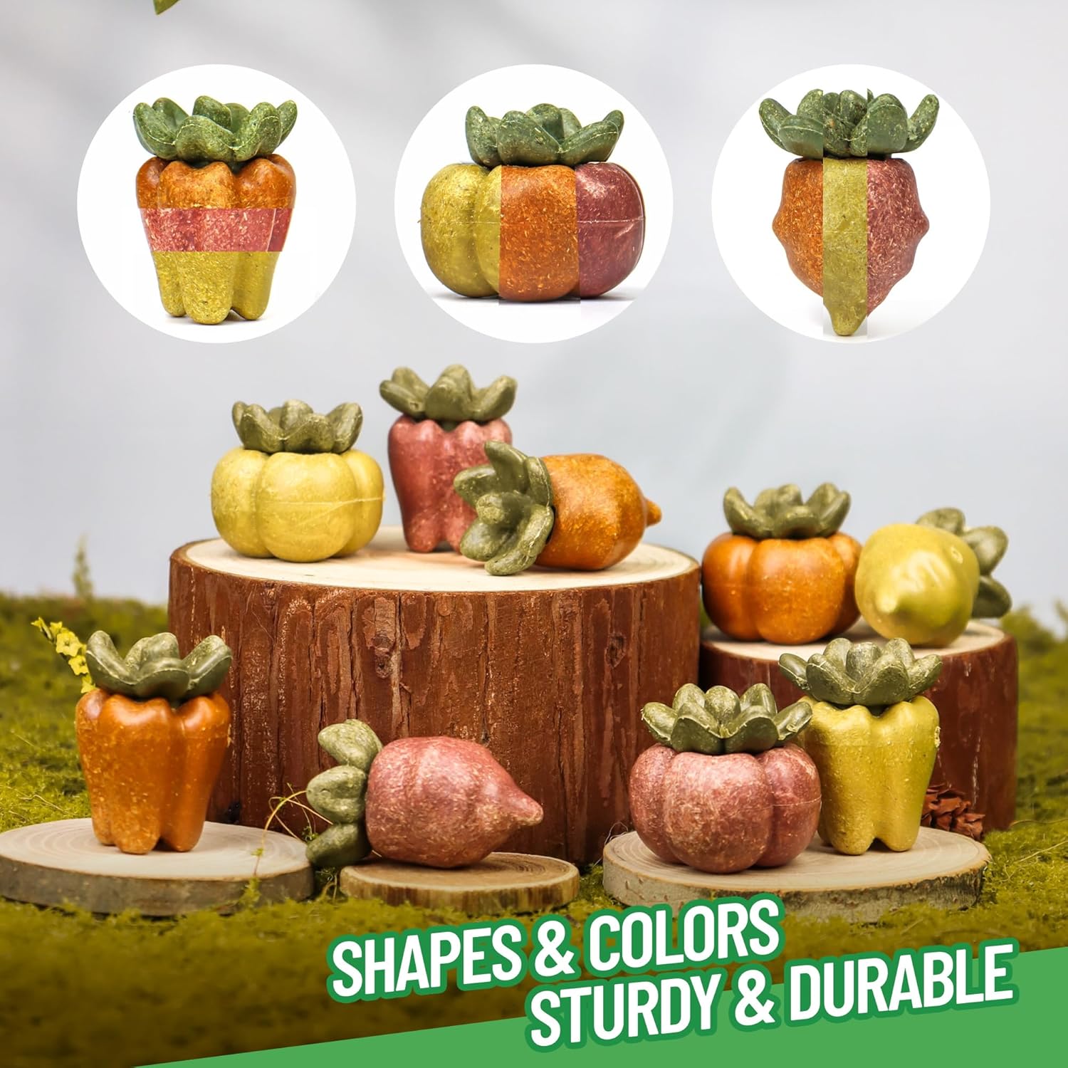- [ Habitat Enrichment ]: Colorful beet, bell pepper and persimmon shaped chinchilla toys add a fun and decorative element to your pet's habitat