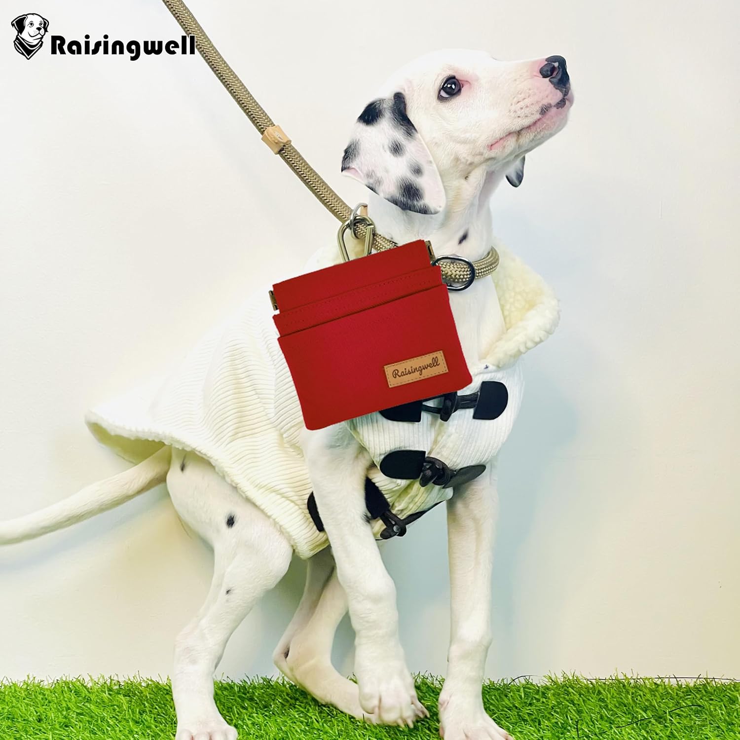 • Durable Material: Raisingwell's dog treat training pouch is crafted from durable, washable, non-toxic vegan fabric, made of pure cotton. In particular, the waterproof lining addresses the issue of difficult cleaning inside the training pouch.