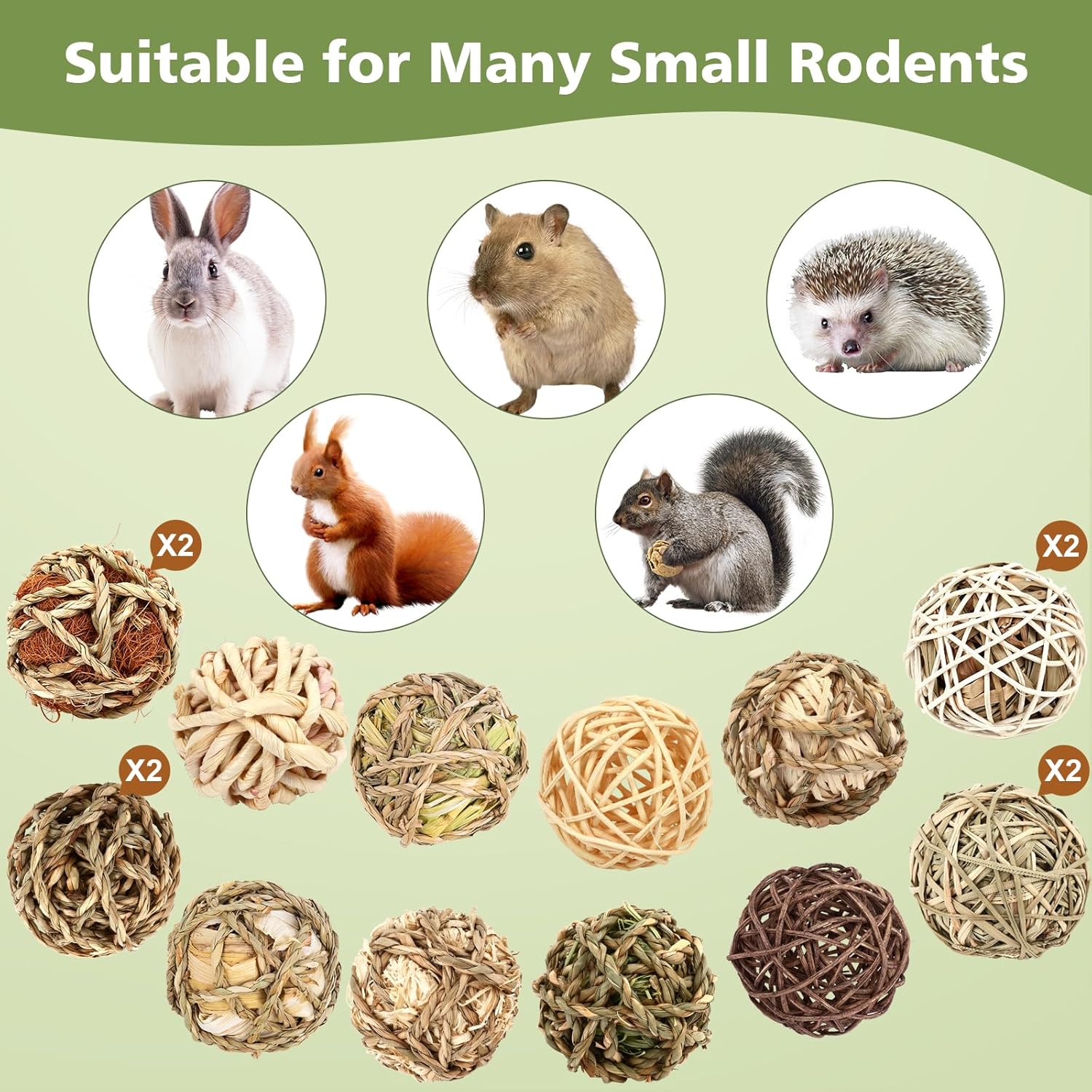 - ✨Our rabbit chewing toy set includes 16 grass balls of different texture, 1*Skinless Rattan Ball, 1*Brown Skinless Rattan Ball, 1*Corn Leaves Ball, 1*Wheat Grass +Seaweed Ball, 1*Seaweed +Corn Husk Ball, 1*Timothy Hay + Seaweed Ball, 1*Skinless Rattan +Seaweed Ball, 1*Seaweed +Corn Silk Ball, 2*Palm Fibers + Seaweed Ball, 2*Reed Ball, 2*Reed +Skinless Rattan Ball, 2*Seaweed Ball. It's a great gift for furry friends.