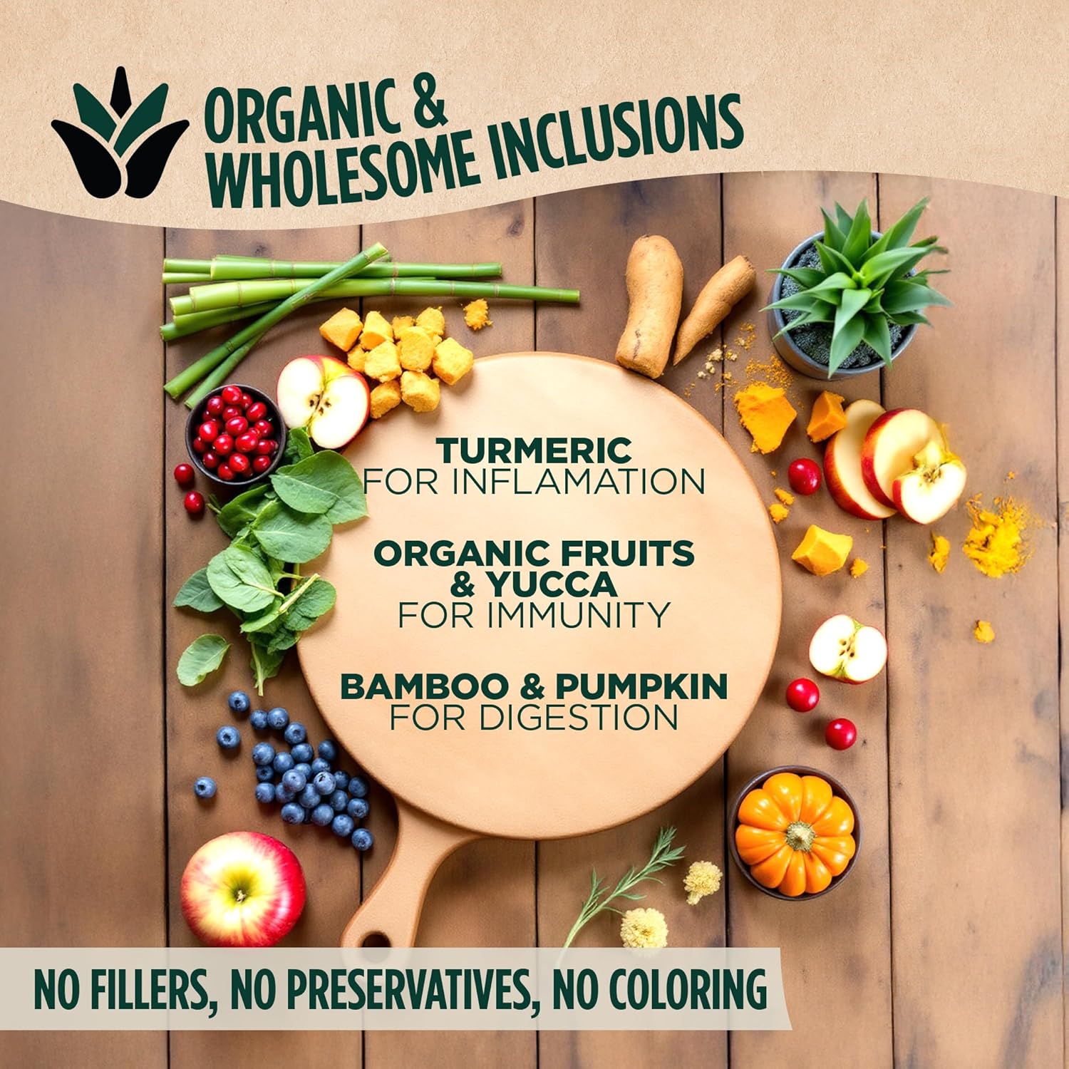 - Natural and Organic Superfoods for Complete Wellness: Enriched with ethically sourced green-lipped mussels for joint support, turmeric root for inflammation relief, and organic fruits & vegetables like pumpkin, blueberries, and apples to boost immune health.