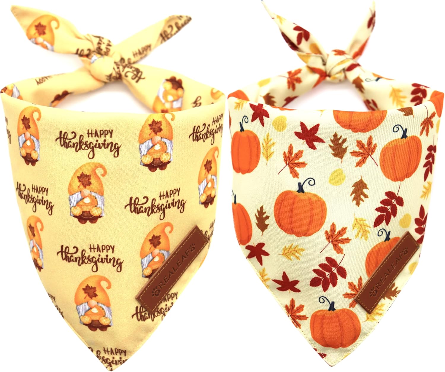 - [ THANKSGIVING DESIGN ]:Featuring Thanksgiving pattern with pumpkins and leaves. These bandanas add a cute and stylish touch to your furry friend's look.