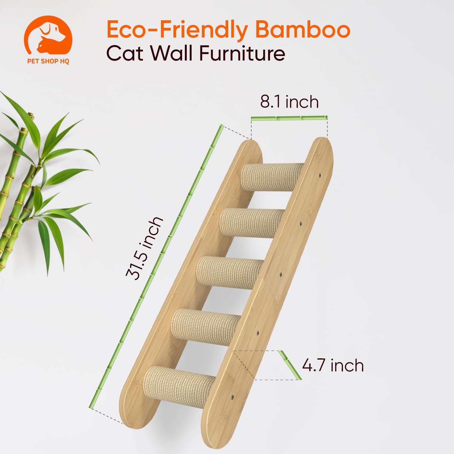 • 100% Bamboo Wood: Our cat shelves for wall are made from 100% bamboo, with no varnish or formaldehyde, ensuring a safe and eco-friendly option for your cat’s well-being. The wood is odorless, stylish, and durable enough to last long