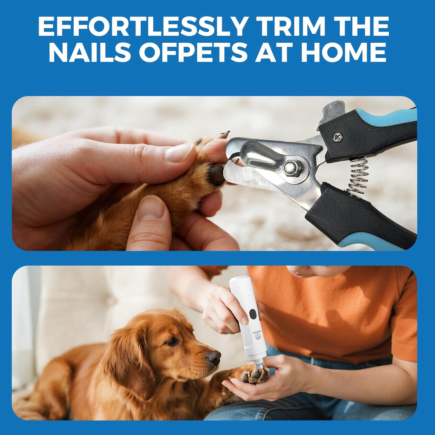- 🐾【EXPERIENCE THE ULTIMATE PAW CARE COMBO】Our pet grooming set includes a rechargeable dog nail clipper and a nail grinder, working together seamlessly to provide complete nail care for your pet.Trim with precision using the clipper, then refine with the grinder for a flawless finish. This perfect pairing ensures your pet's comfort and safety, making nail grooming a breeze!