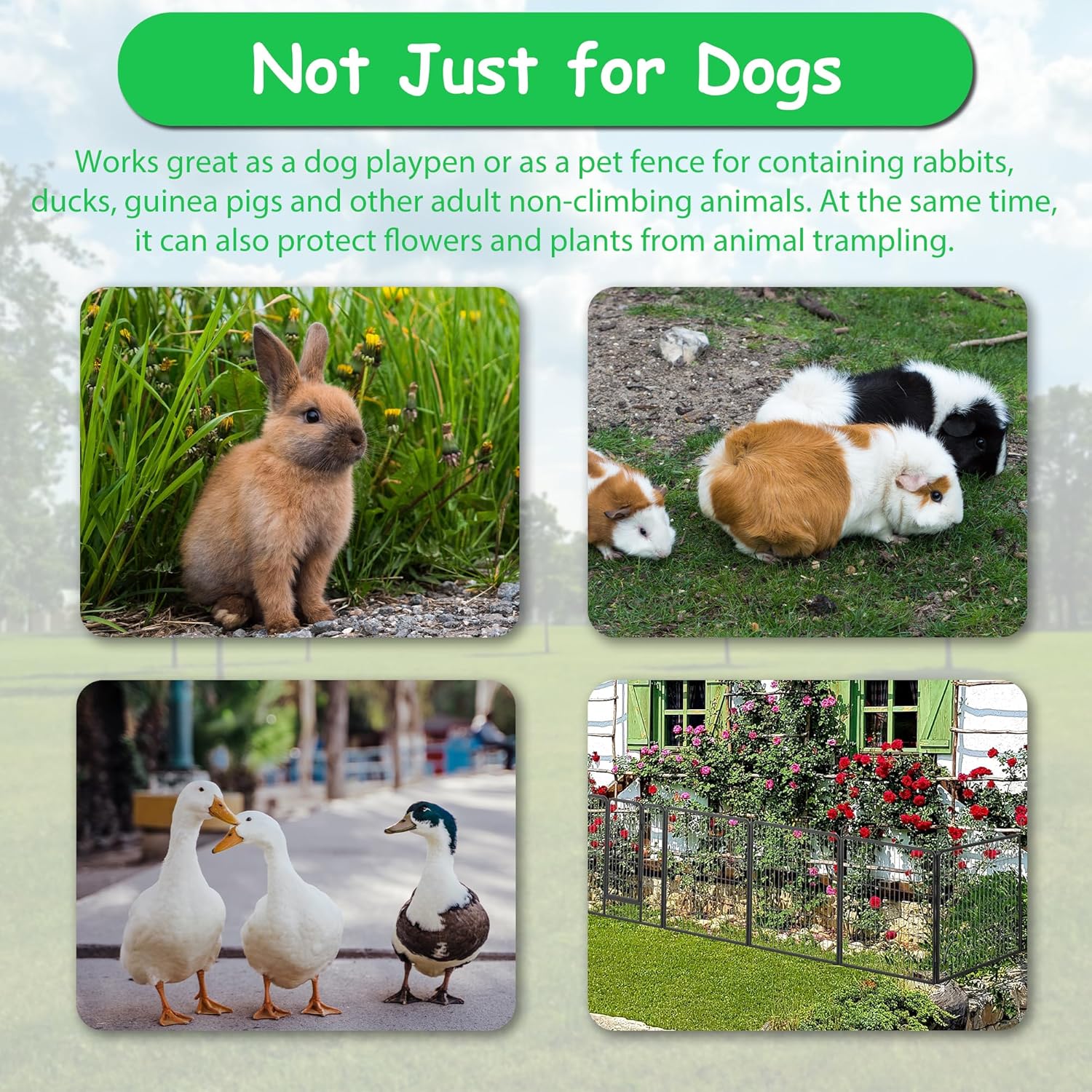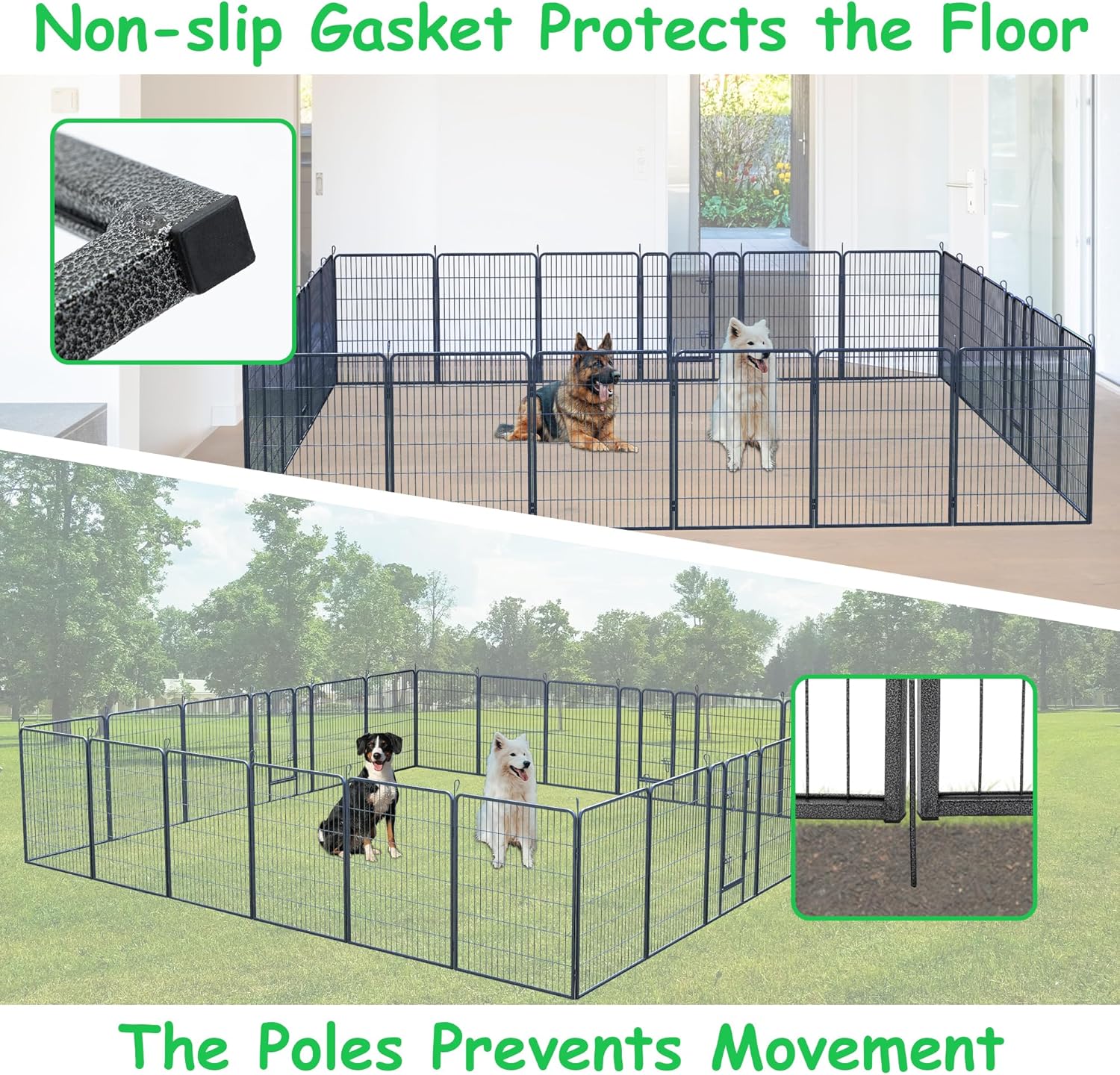 - 🐶𝗩𝗲𝗿𝘀𝗮𝘁𝗶𝗹𝗲 𝗦𝗵𝗮𝗽𝗲 𝗢𝗽𝘁𝗶𝗼𝗻𝘀:Our outdoor dog fence panels are 32'' wide and 40'' high, including 24 panels and 3 gates, allowing you to set it up in various shapes like circles or rectangles to suit your space and your pet's needs. This puppy playpen is ideal for small, medium, and large animals, and the 40'' height ensures their safety